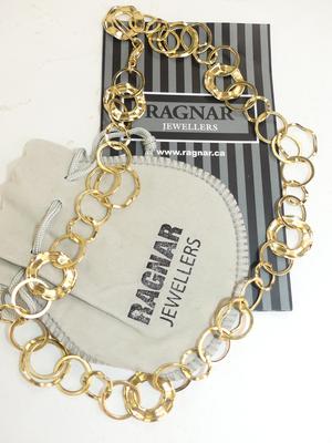 14k gold hammered circle link necklace, ragnar, 18", weighing approx 18.3 grams