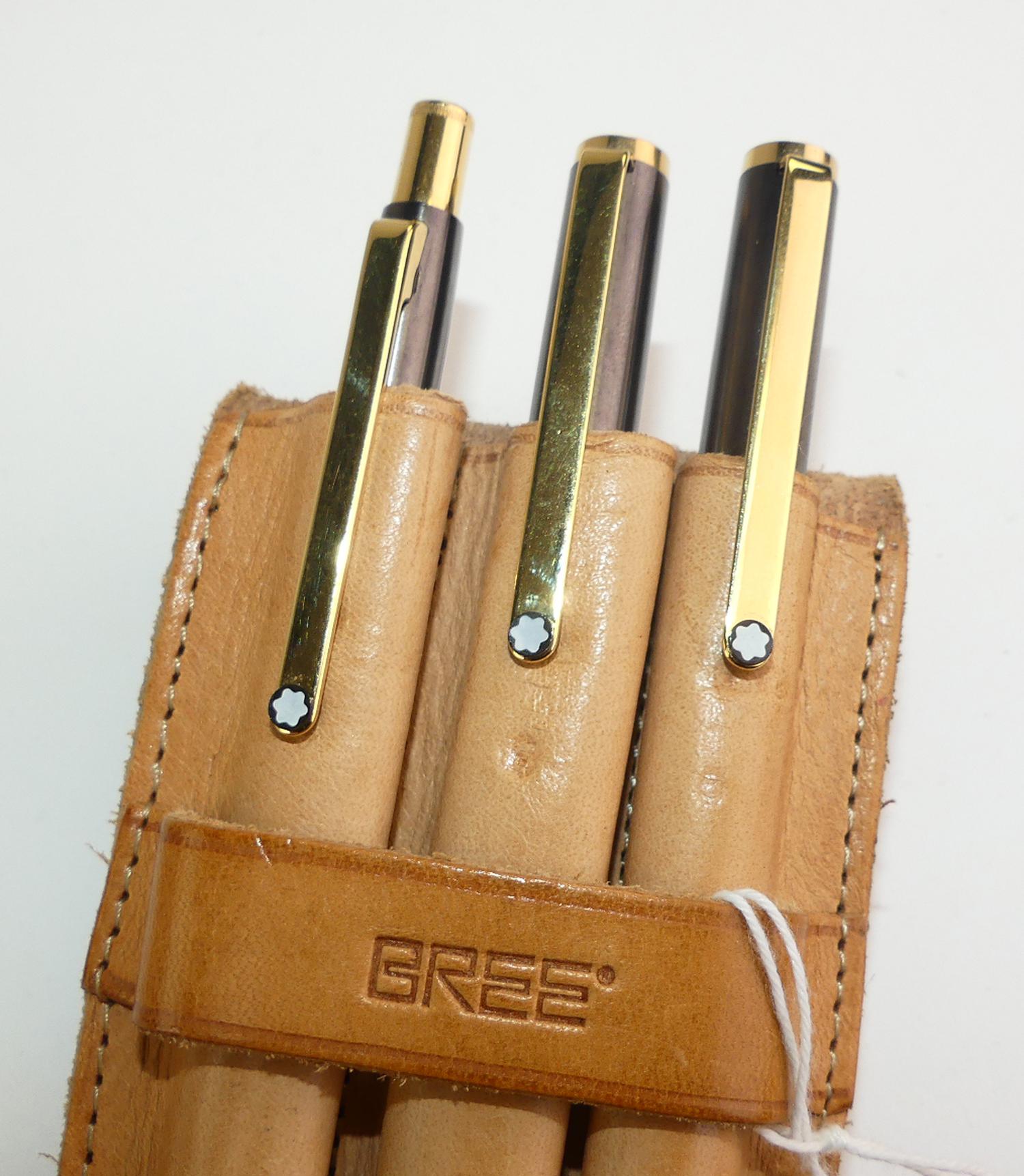 mont blanc pen, pencil and fountain pen in a bree leather case