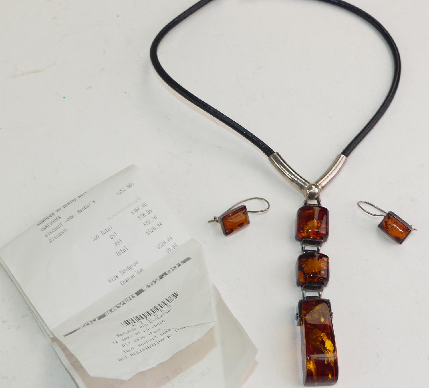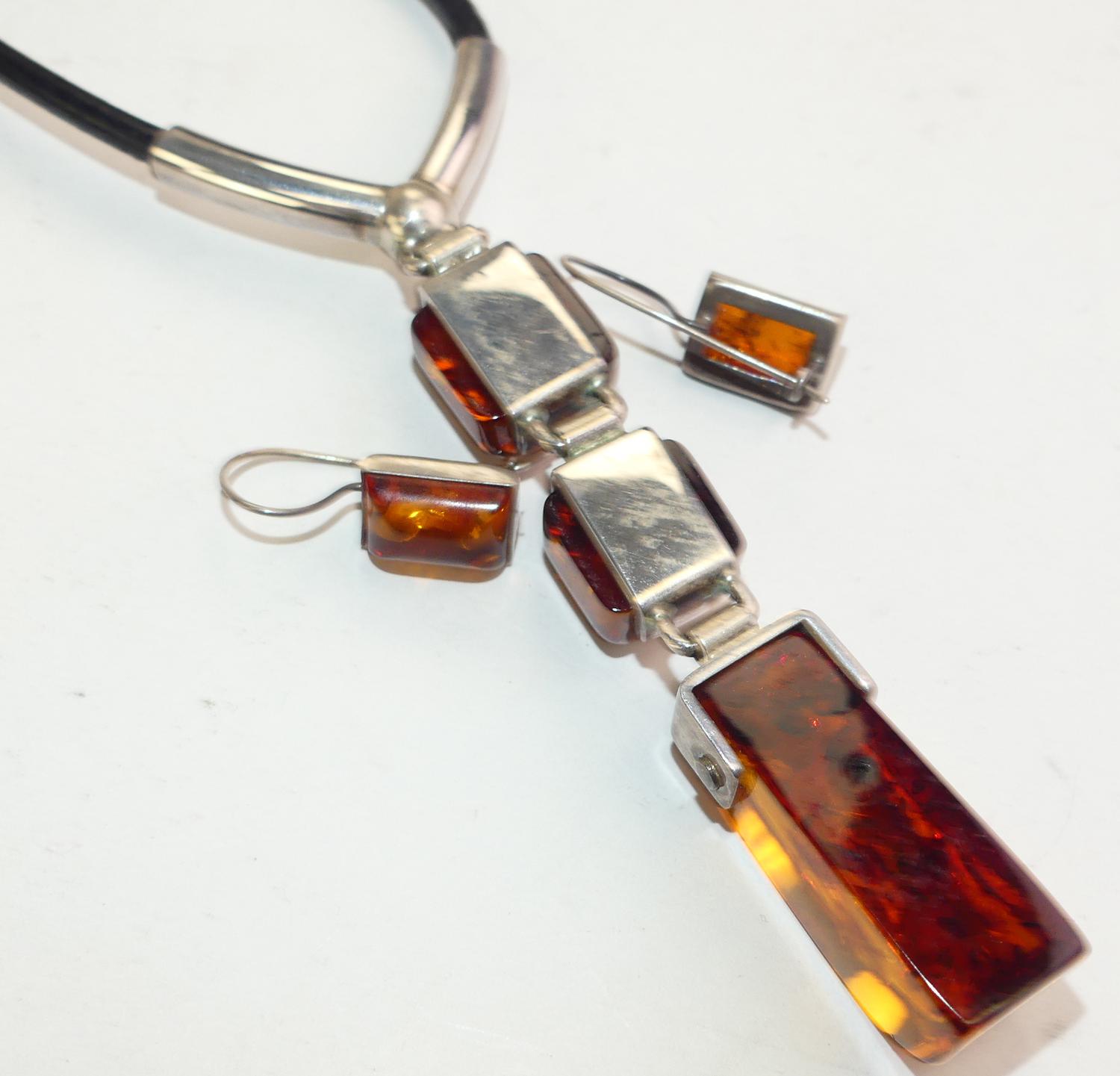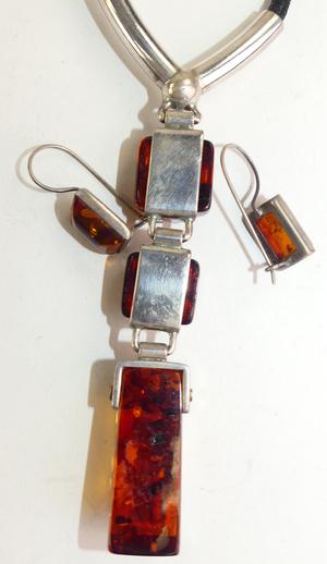 sterling silver amber necklace and earrings