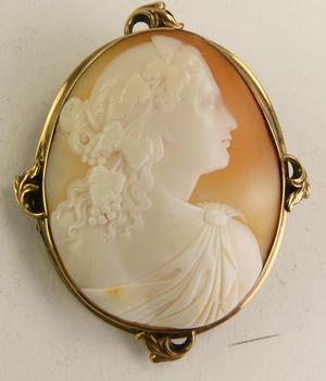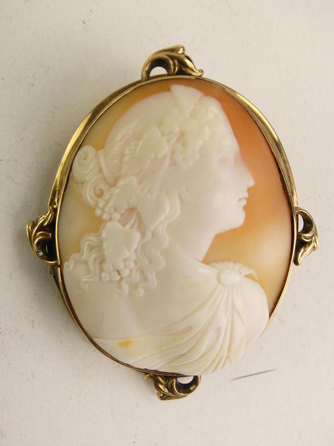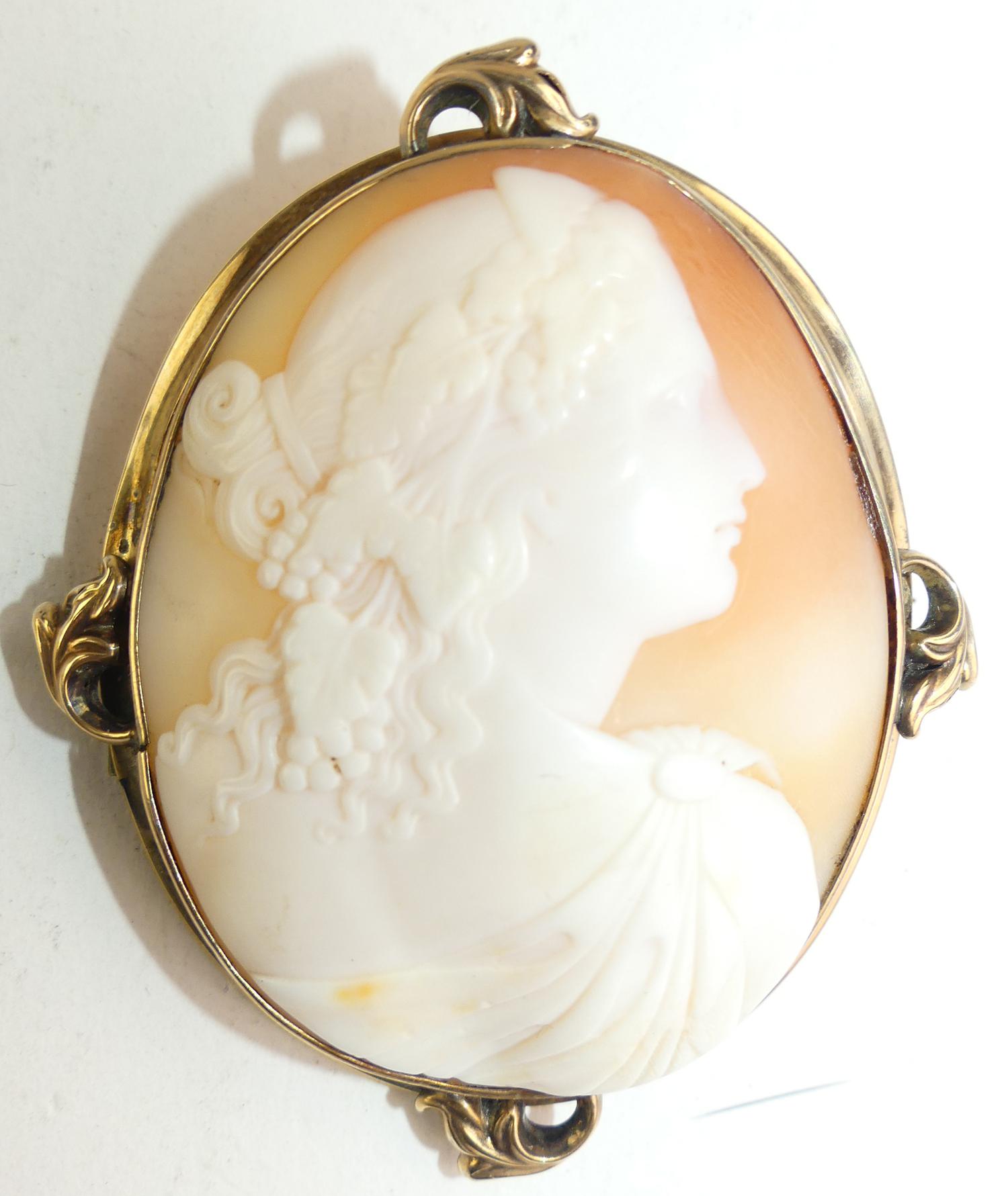 antique 9ct pink gold shell cameo brooch, height 2 3/8"