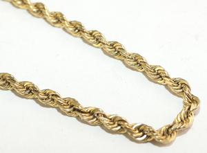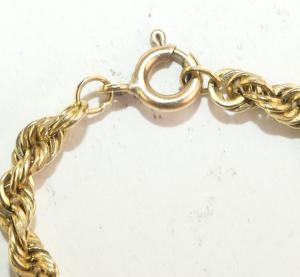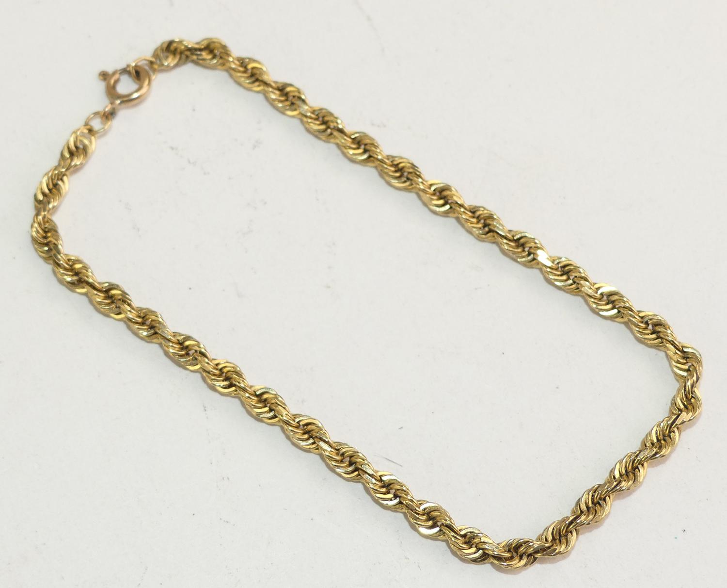 10k gold rope chain bracelet, length 8", weighing approx 7.4 grams