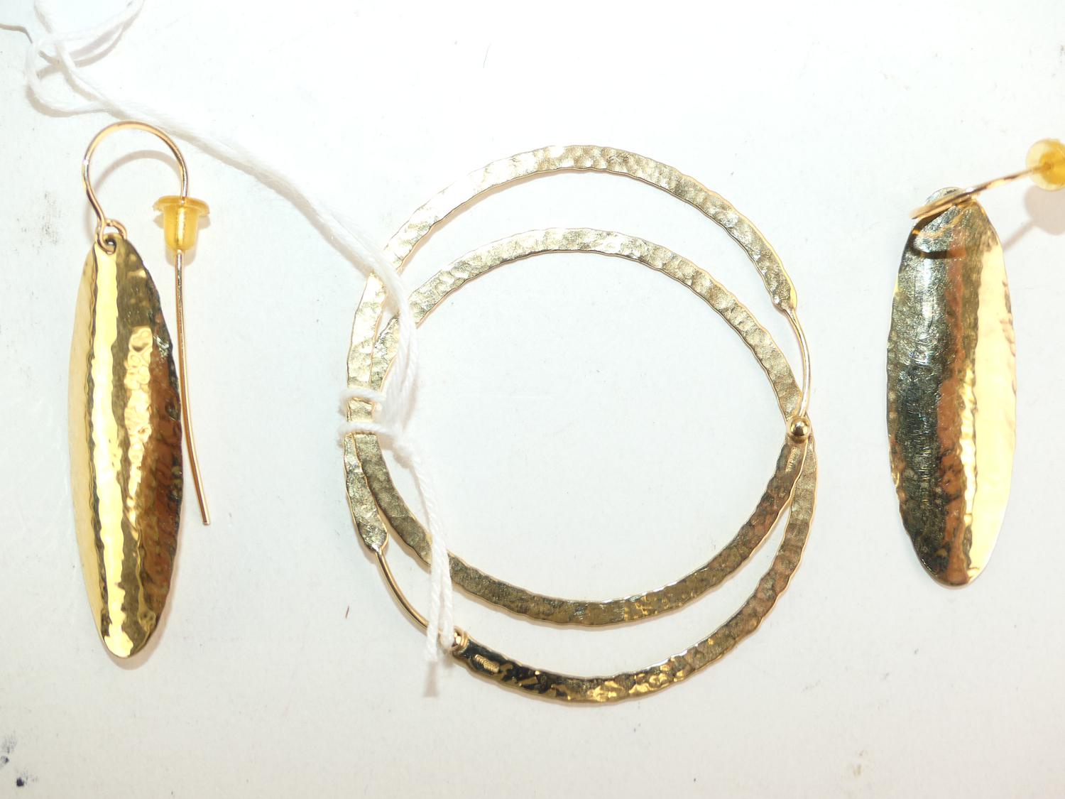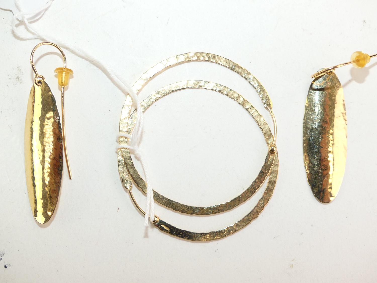 14k hammered hoop earrings, 6.4 grams