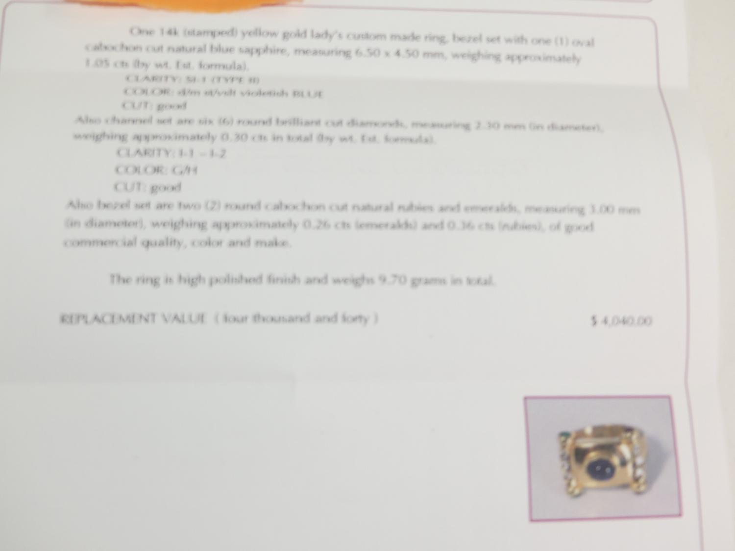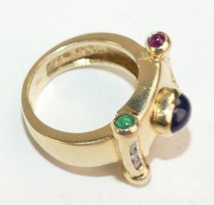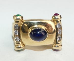 14k sapphire diamond and emerald wide band ring, 9.7grams, with appraisal