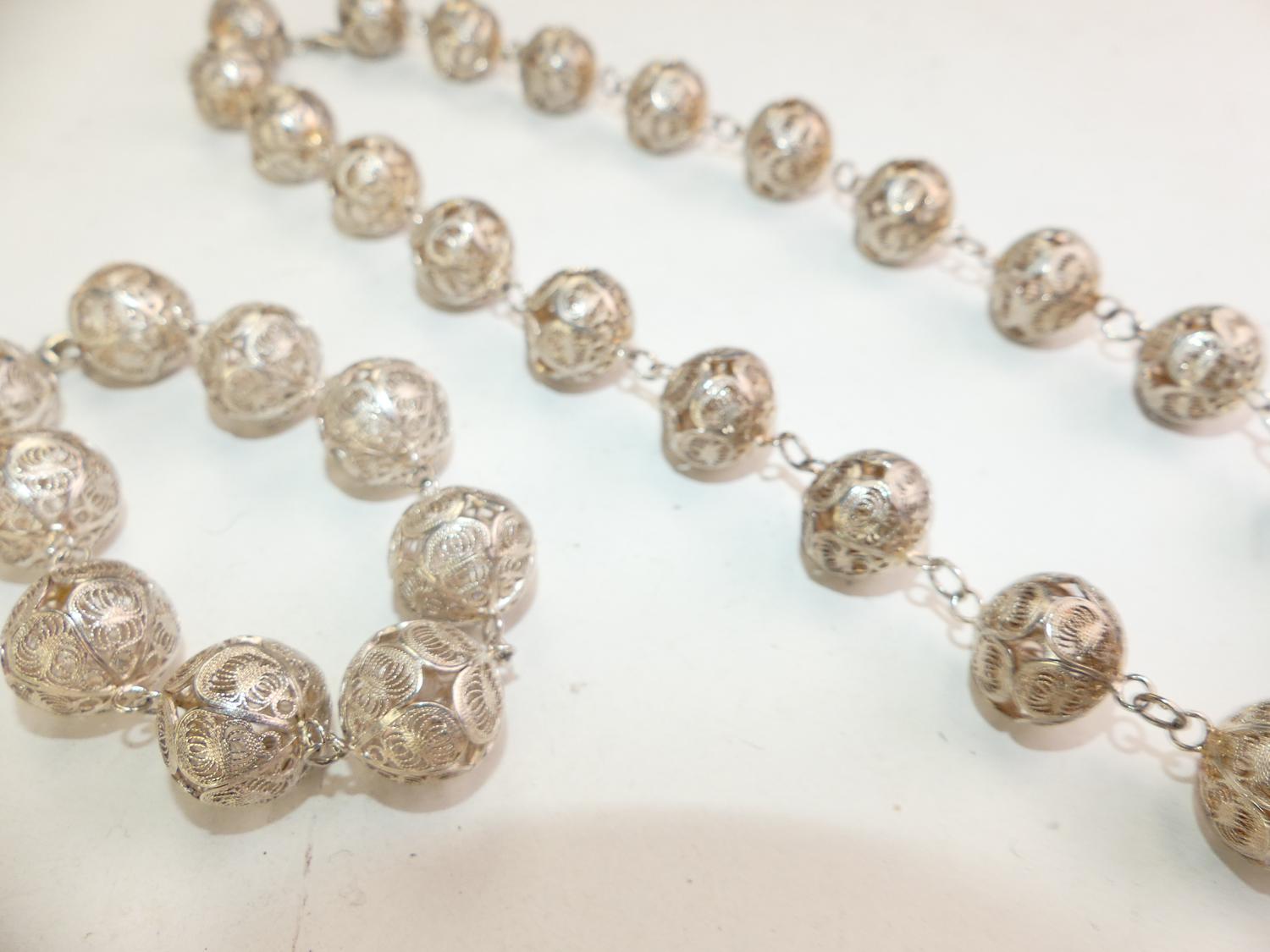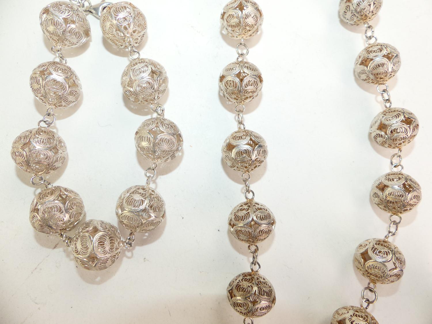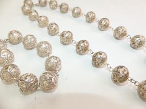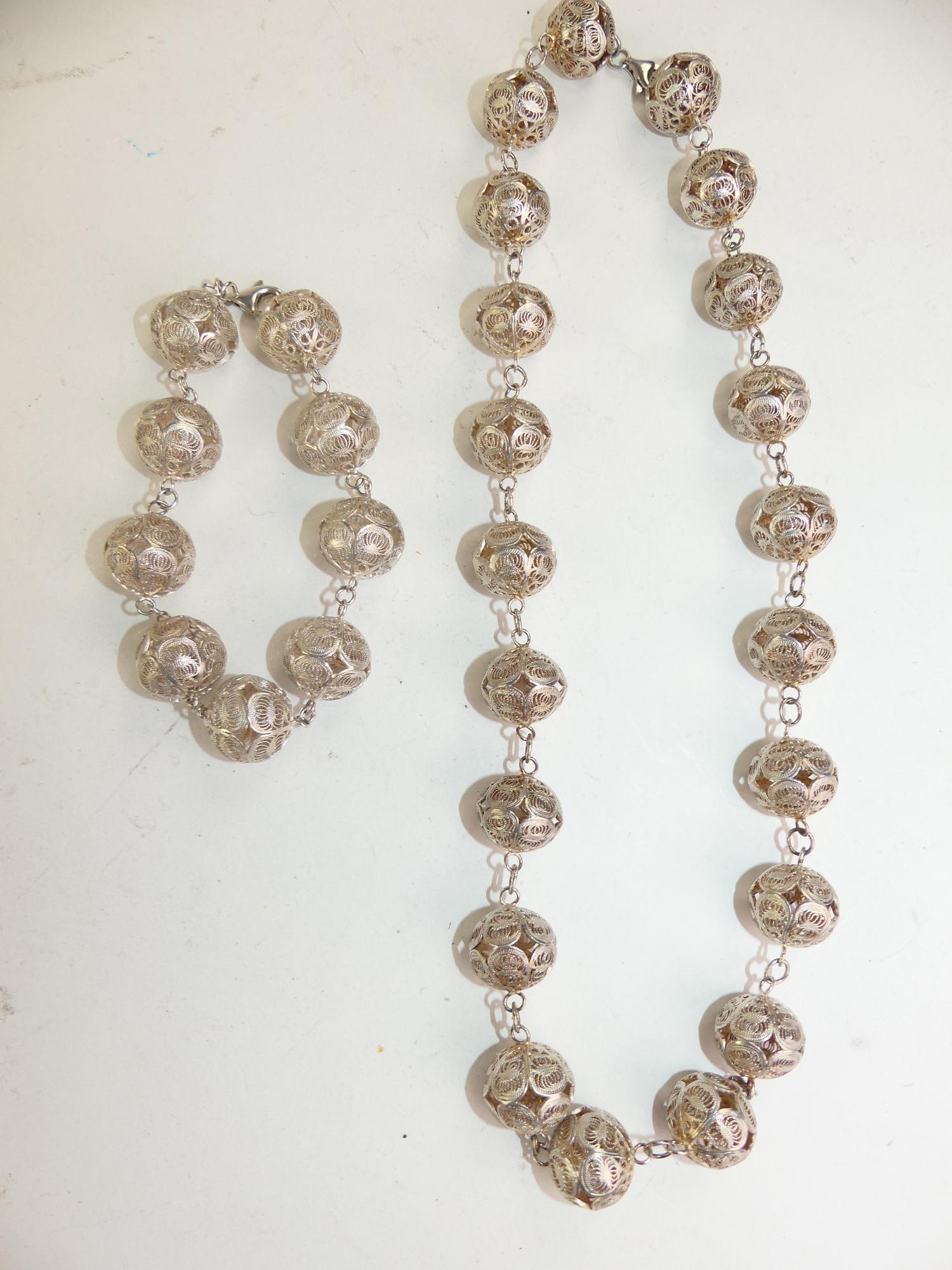 asian silver filigree ball necklace and bracelet, 19" and 8"