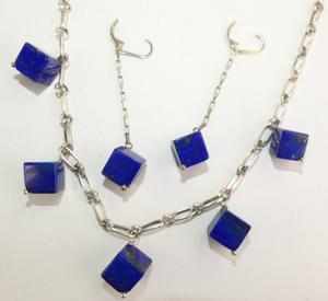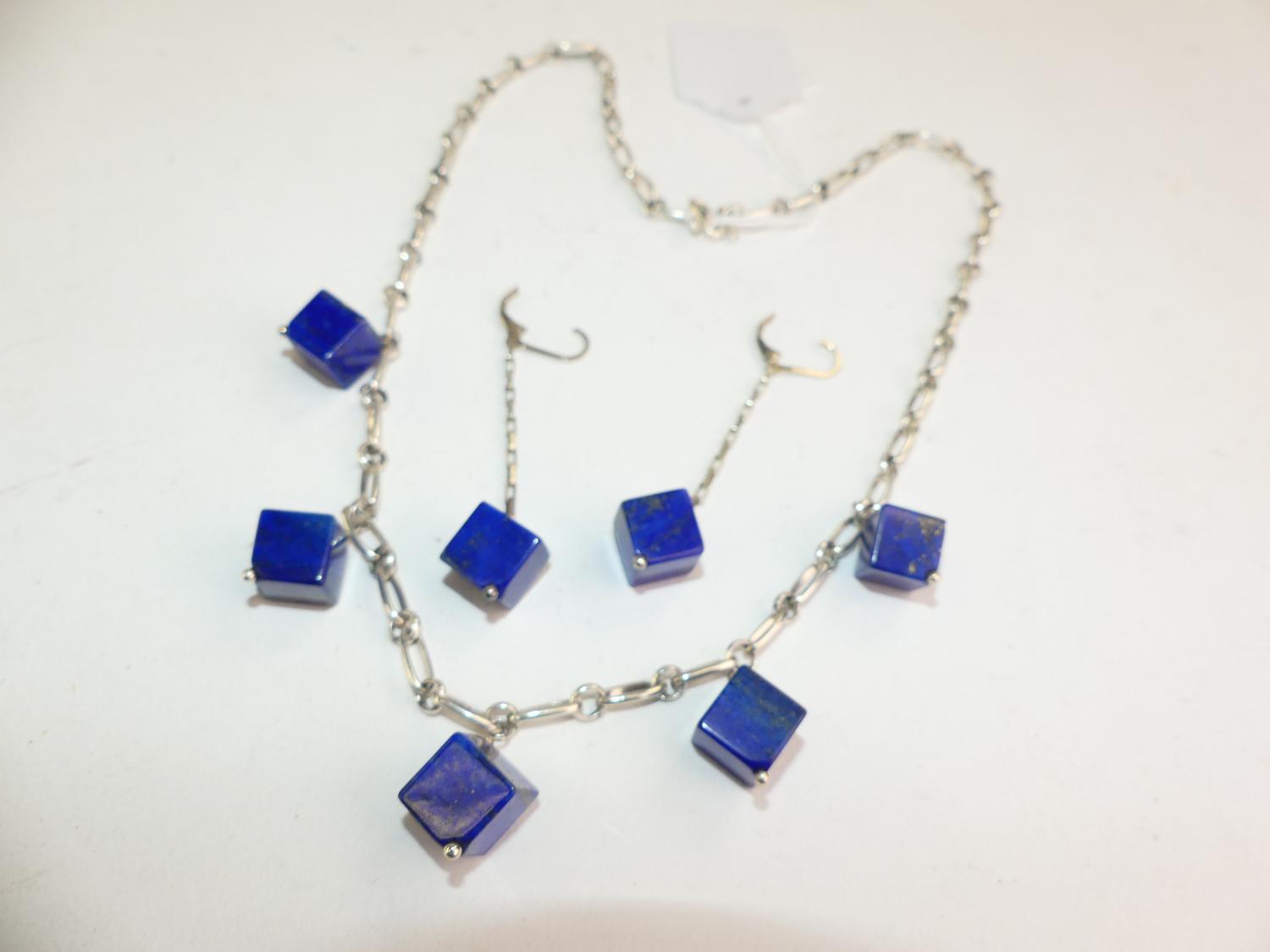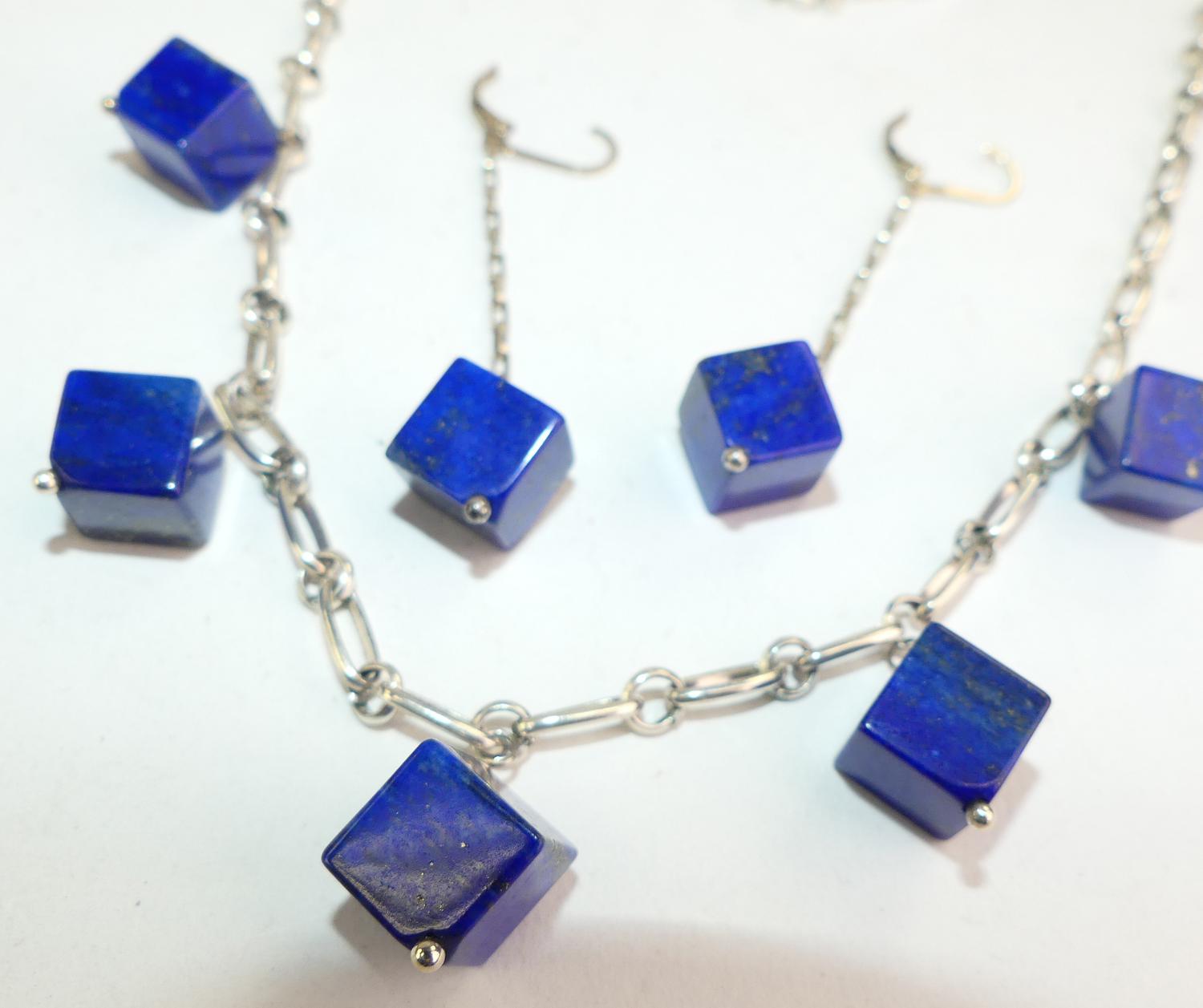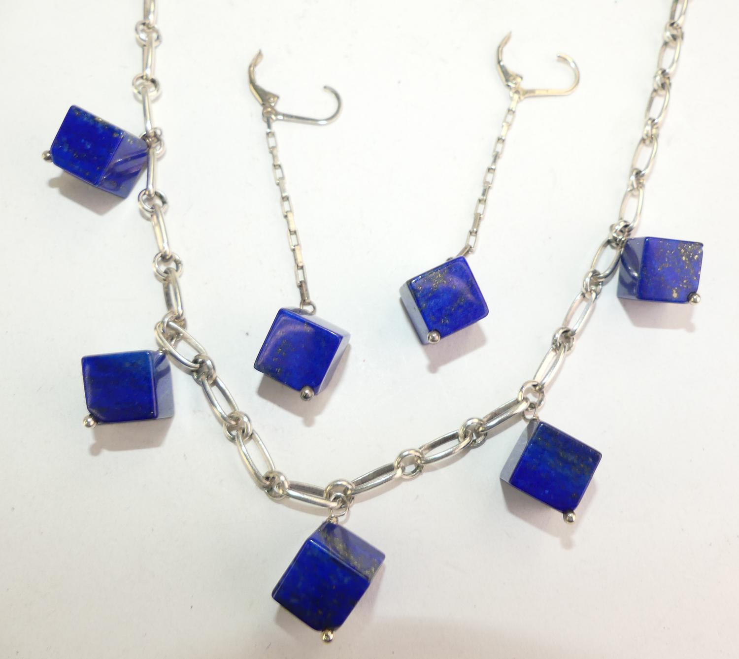 sterling silver lapis demi parure necklace and earrings, length 20"