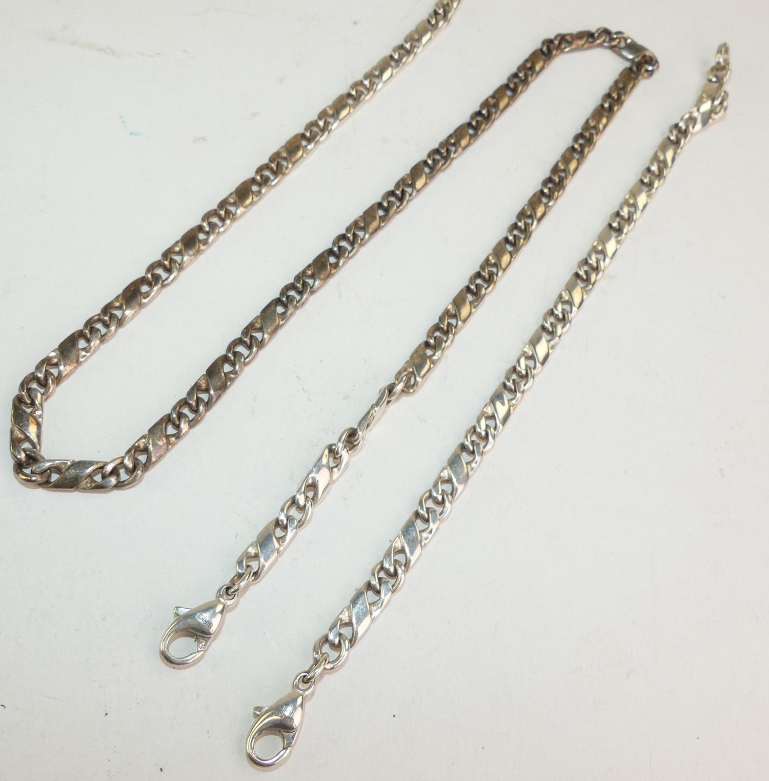 heavy italian sterling silver curb link necklace, and bracelet, w/a 67 grams