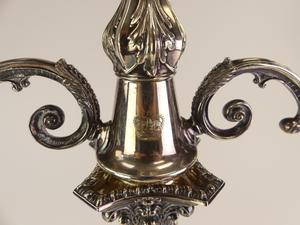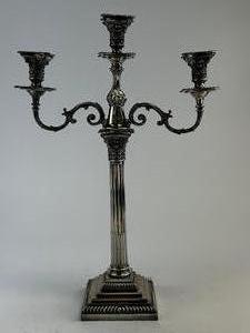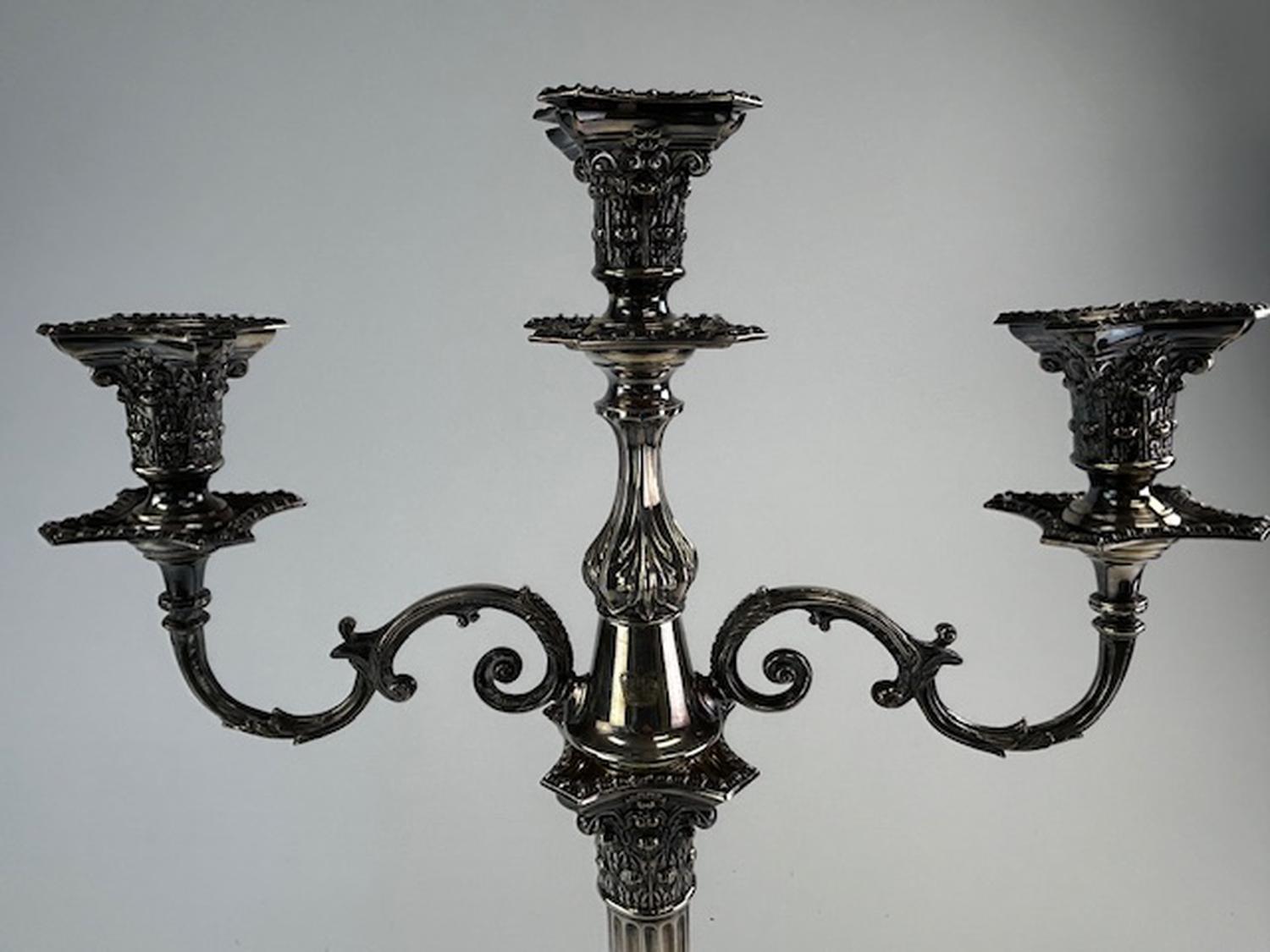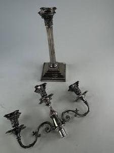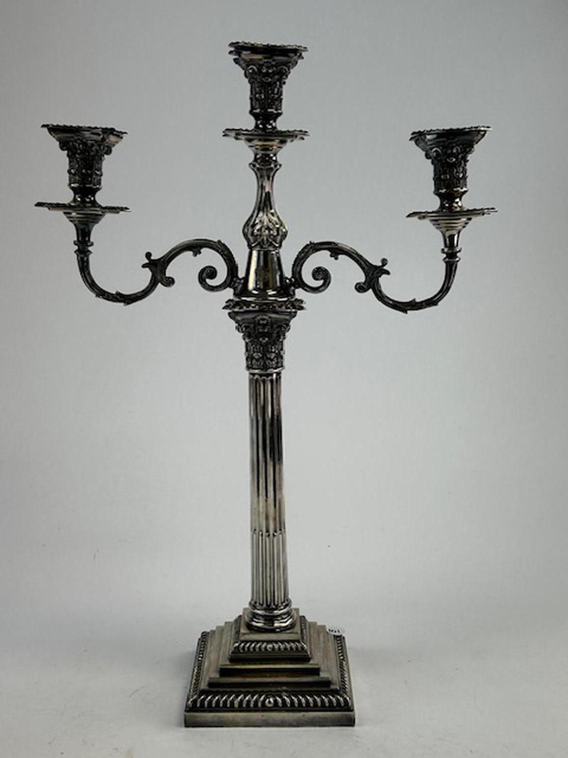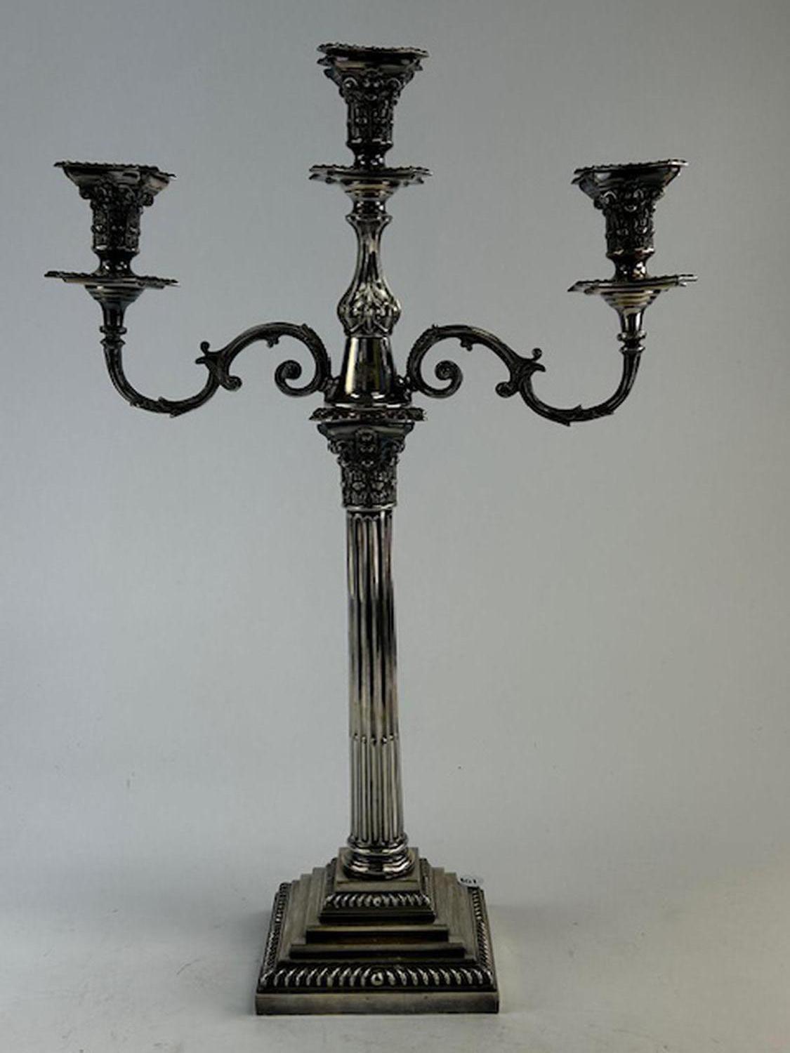 garrard & co., london convertible silver plate three branch candle stick, ht. 22 1/2"