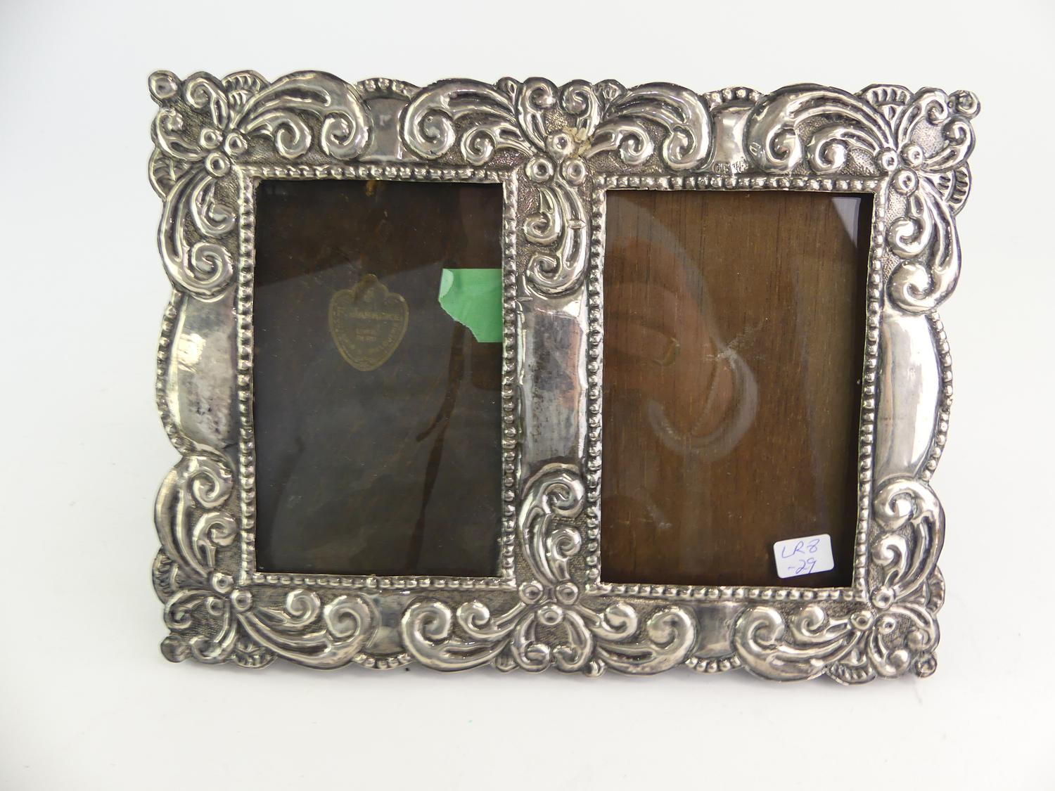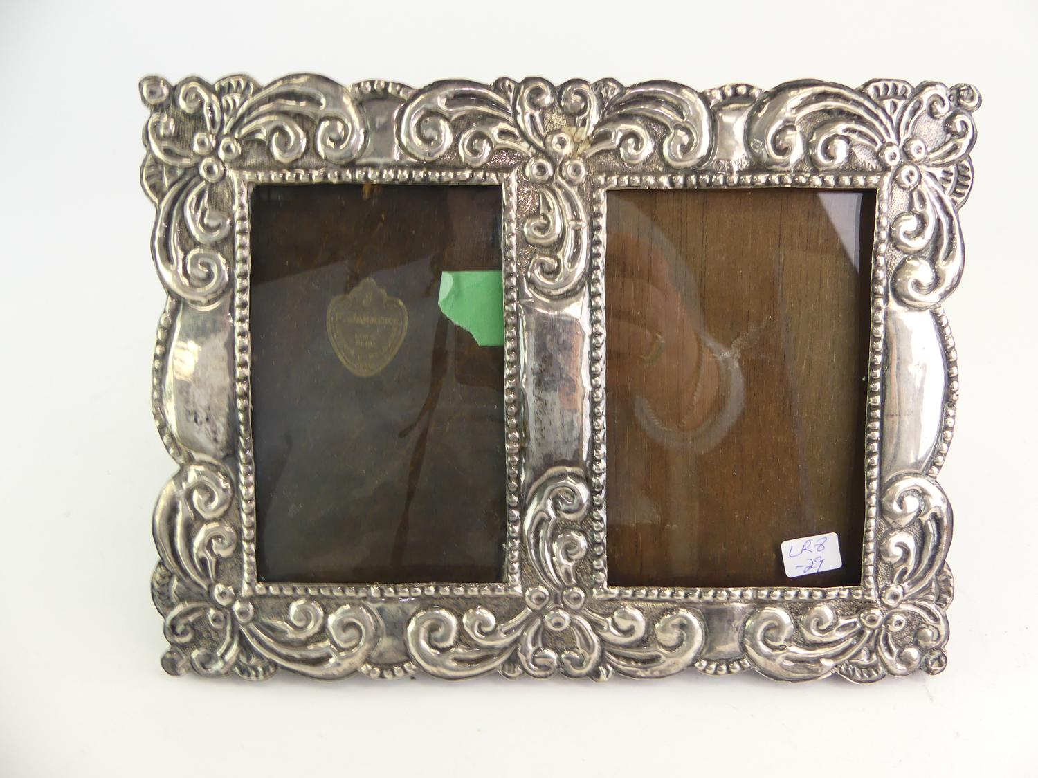 .800 silver mounted double picture dresser frame, 8" x 11 1/2"