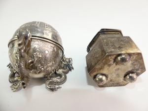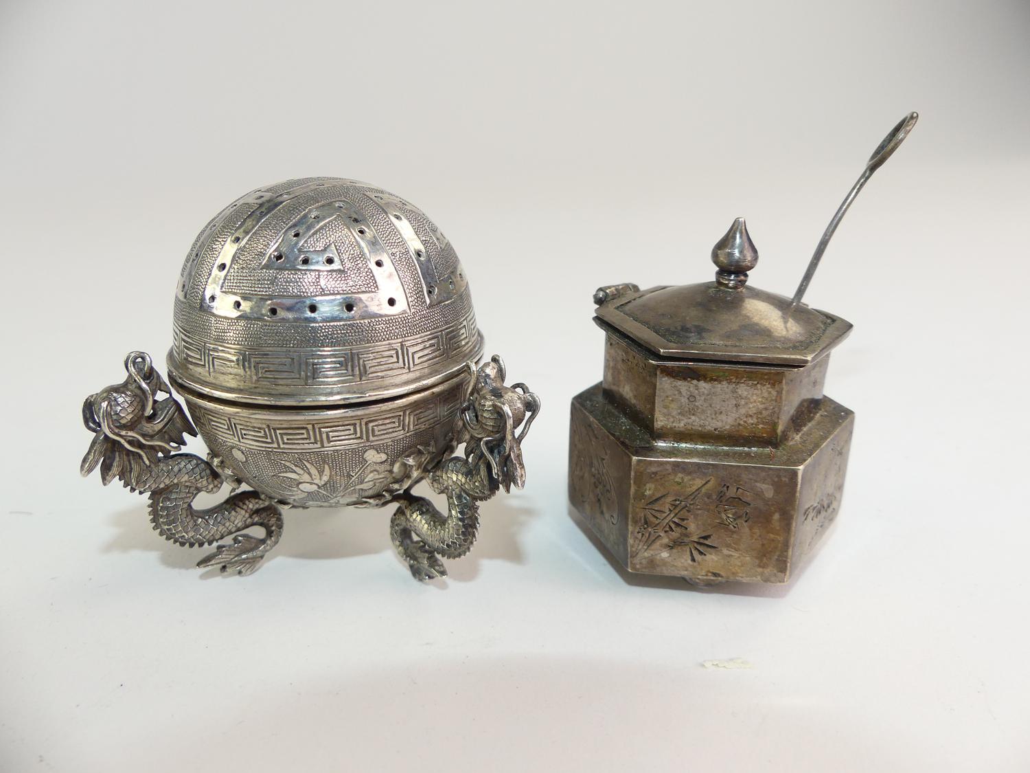 chinese silver hallmarked tea strainer and pot, 79 grams