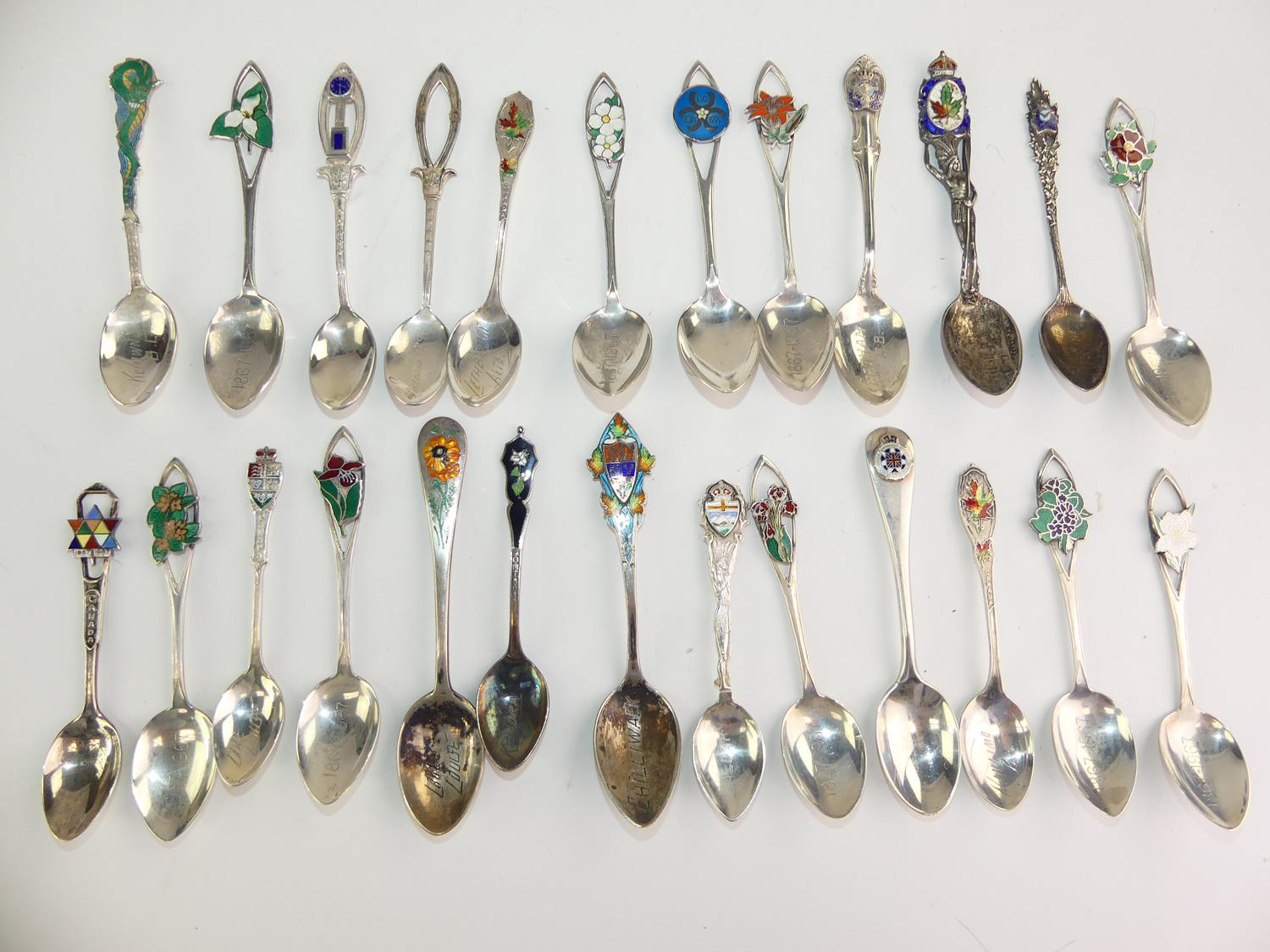 lot of 25 sterling silver enamel collector spoons, 234 grams