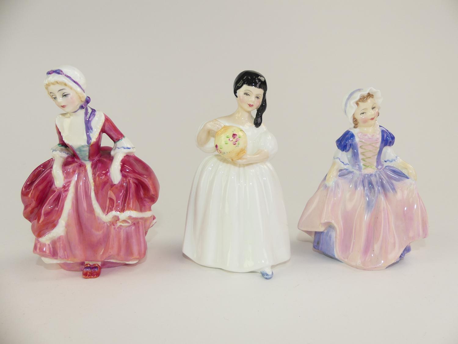 three royal doulton figurines "mandy", "goody two shoes" and "dinky do"