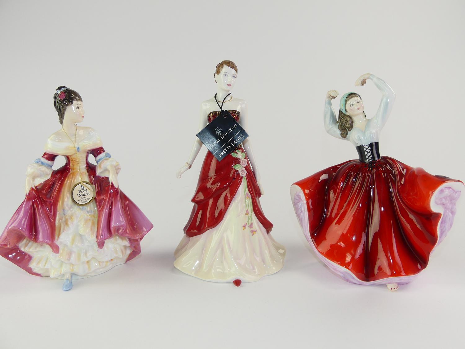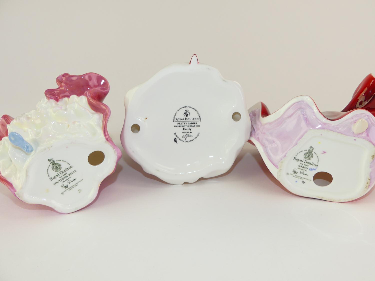 three royal doulton figurines "southern bell", "emily" and "karen"