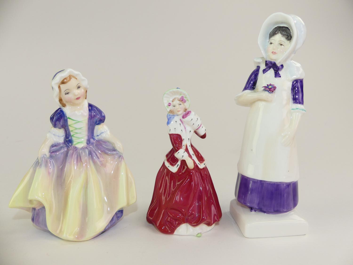 three royal doulton figurines "dinky do", "christmas morn" and "anna"