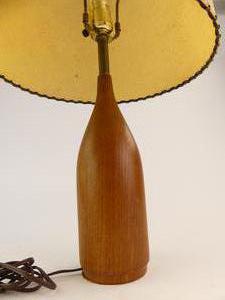 mid century teak bottle-form table lamp with shade, ht. 23"