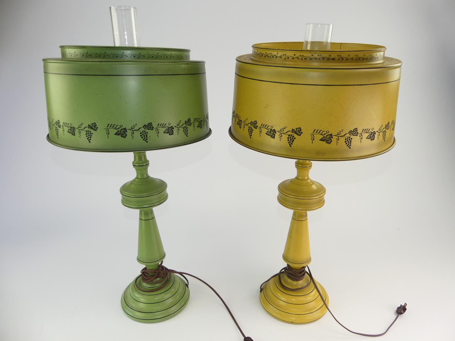 two tole table lamps with shades