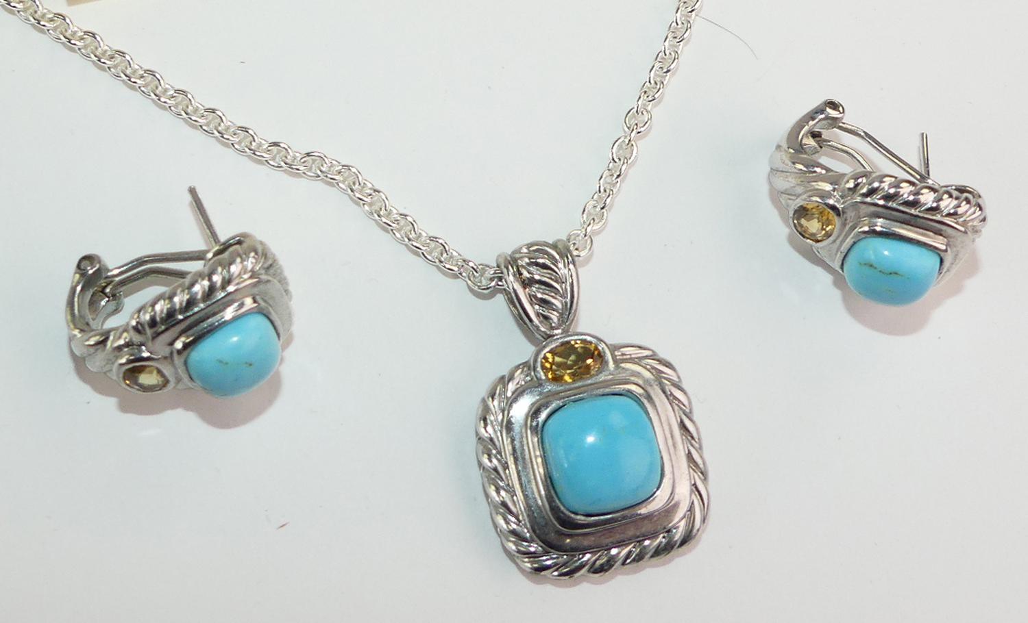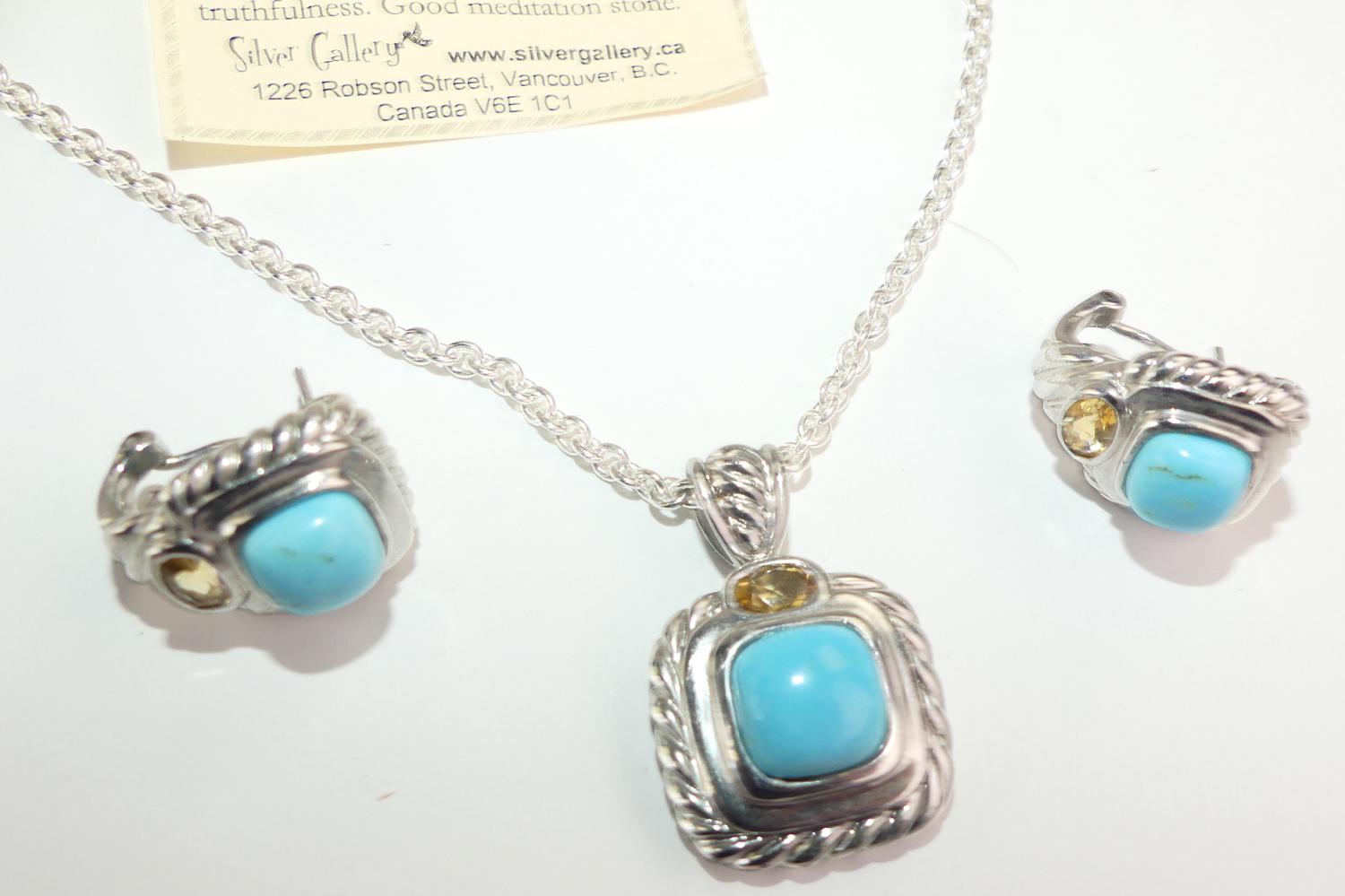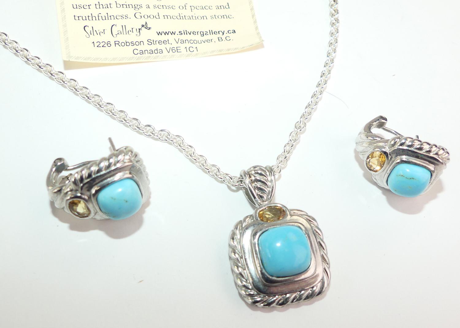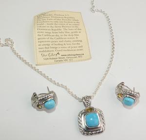 artist made sterling silver blue pectolite quartz pendant necklace and earrings ensuite