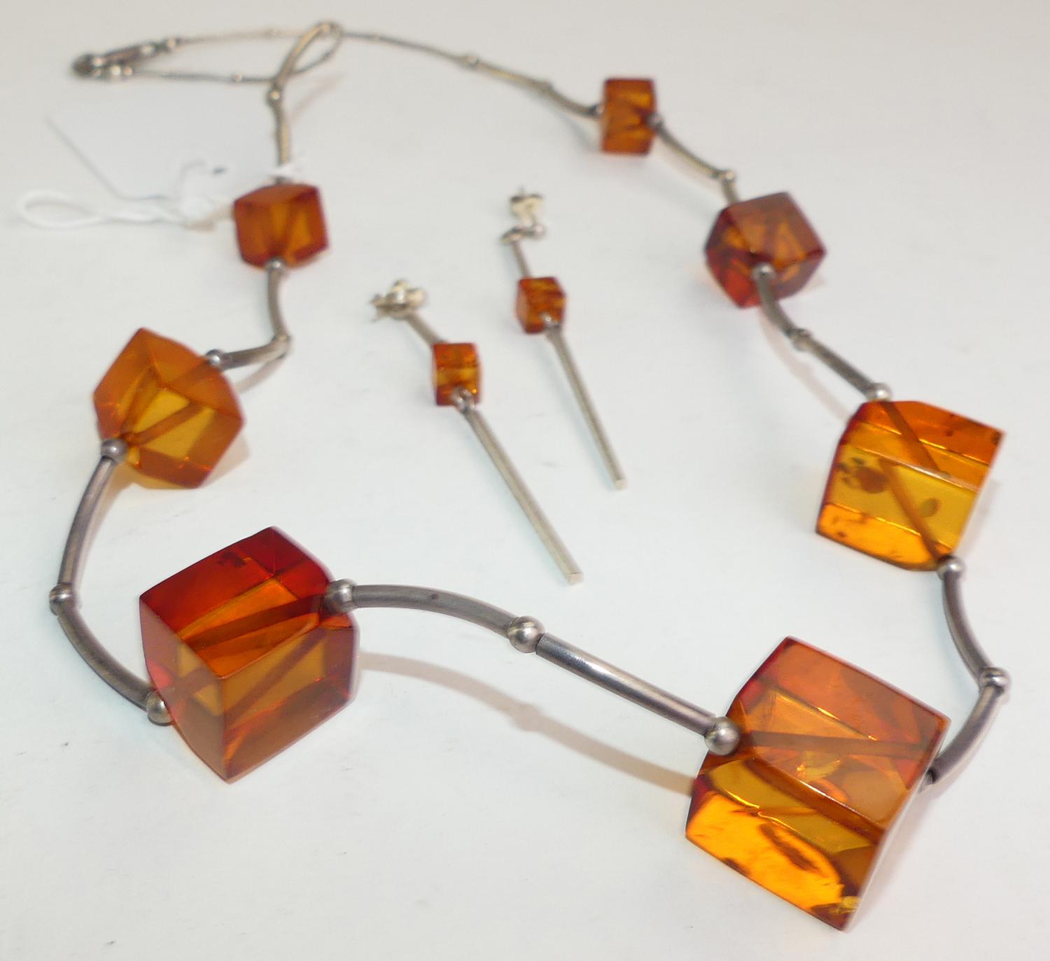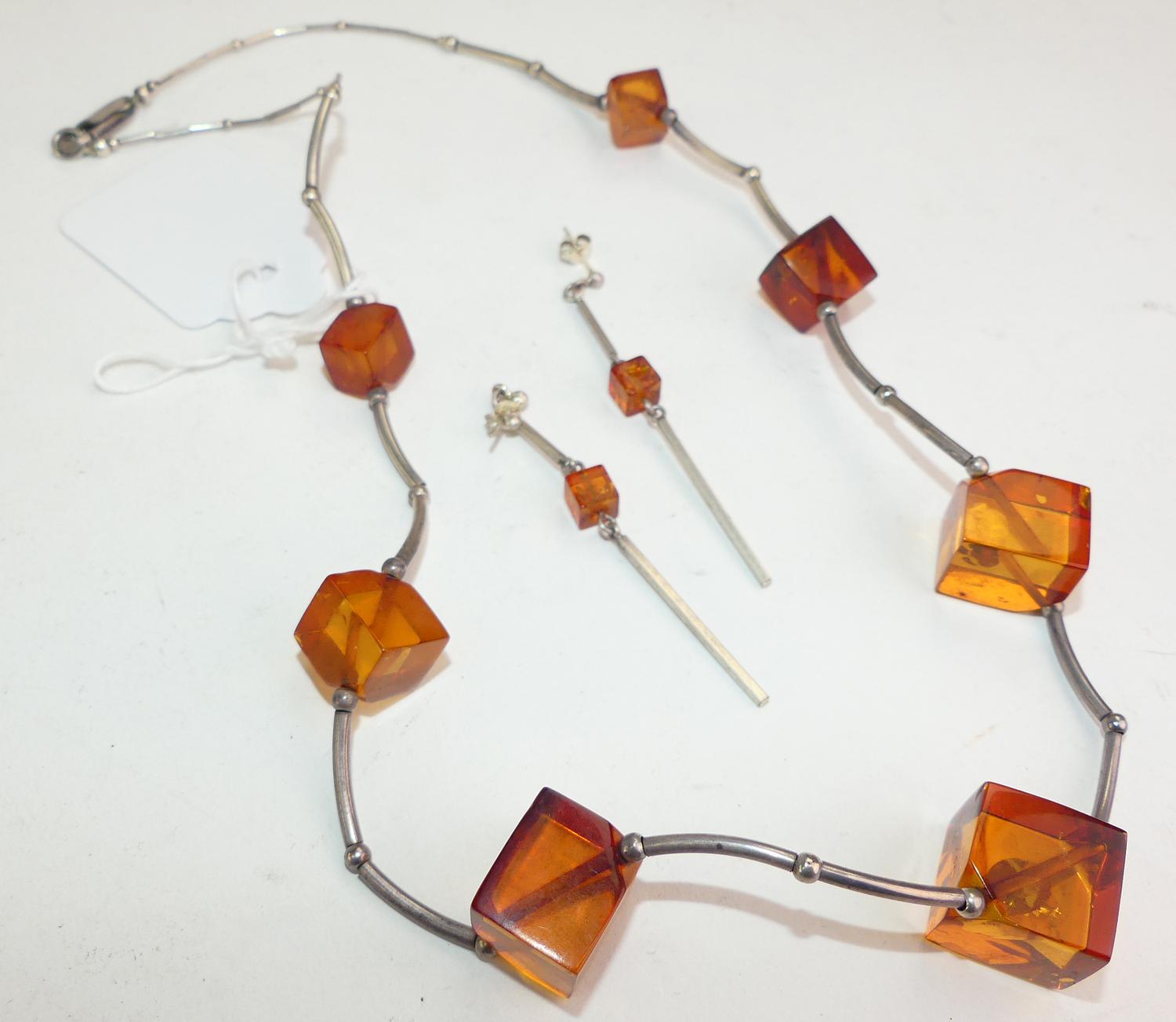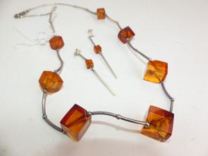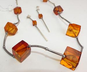 sterling silver amber bead necklace and earrings
