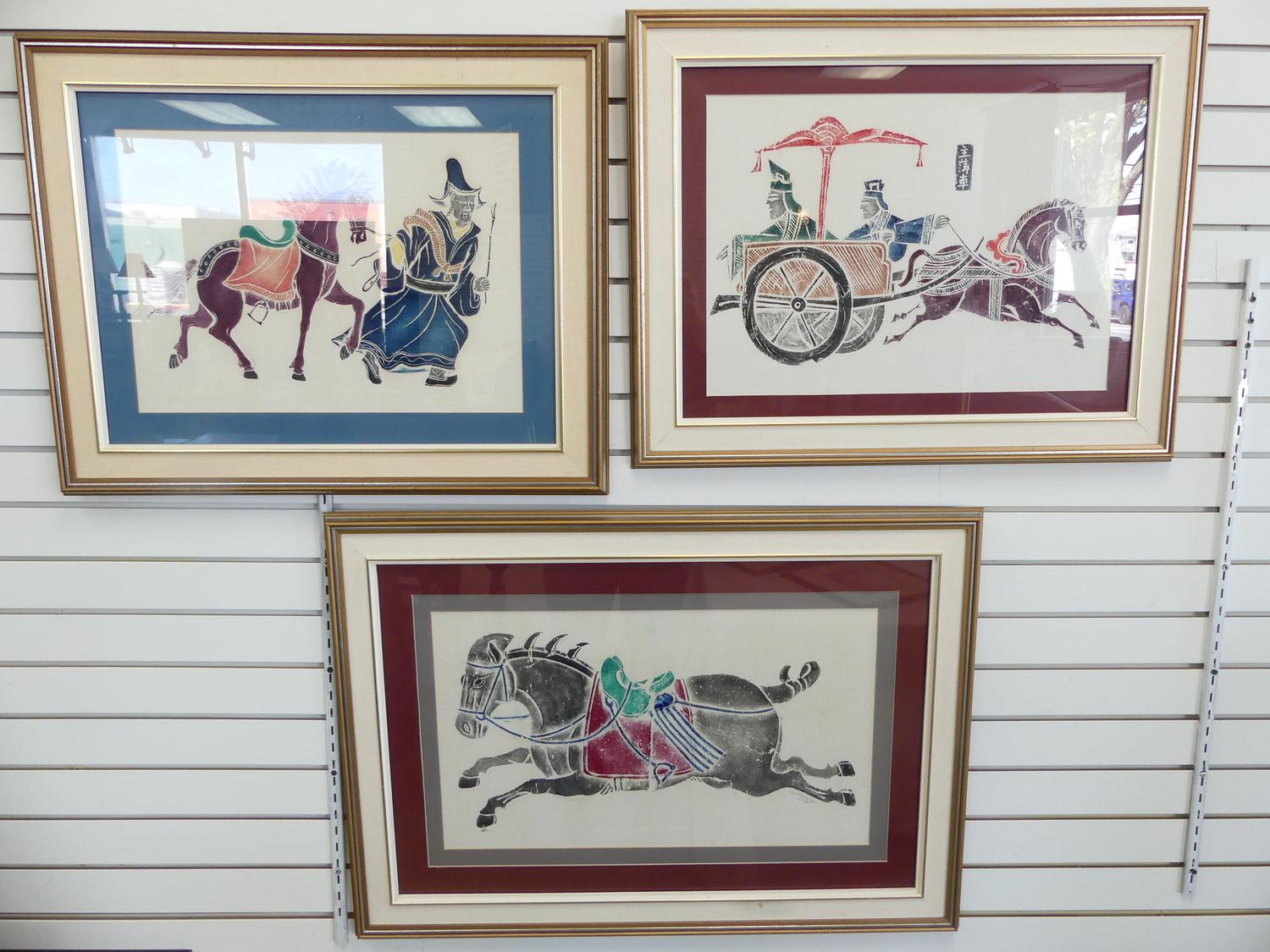 three chinese woodblock prints, smuggled out of china during cultural revolution
