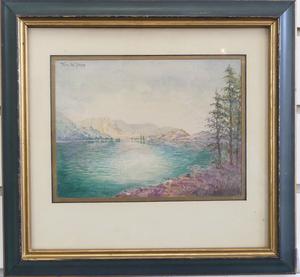 thomas william fripp (1864-1931), watercolour, 5" x 6 1/2", "lake scene"