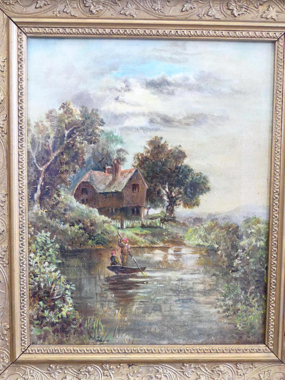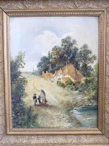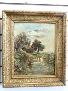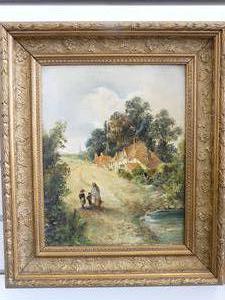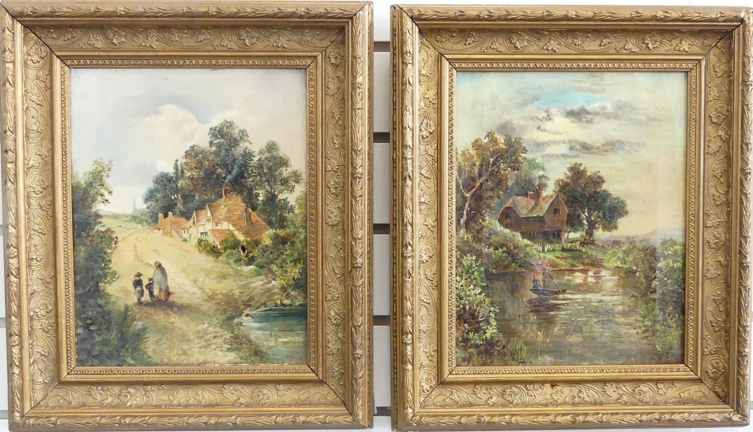 pair of 19th century gilt framed oil on canvas paintings, unsigned, 10" x 8", "surrey country scenes"