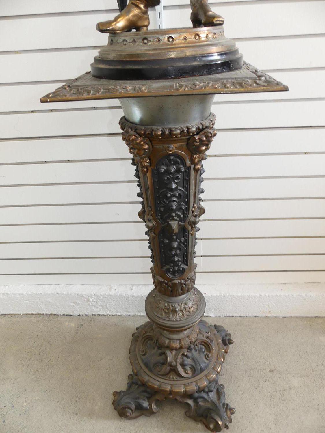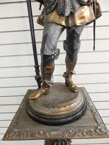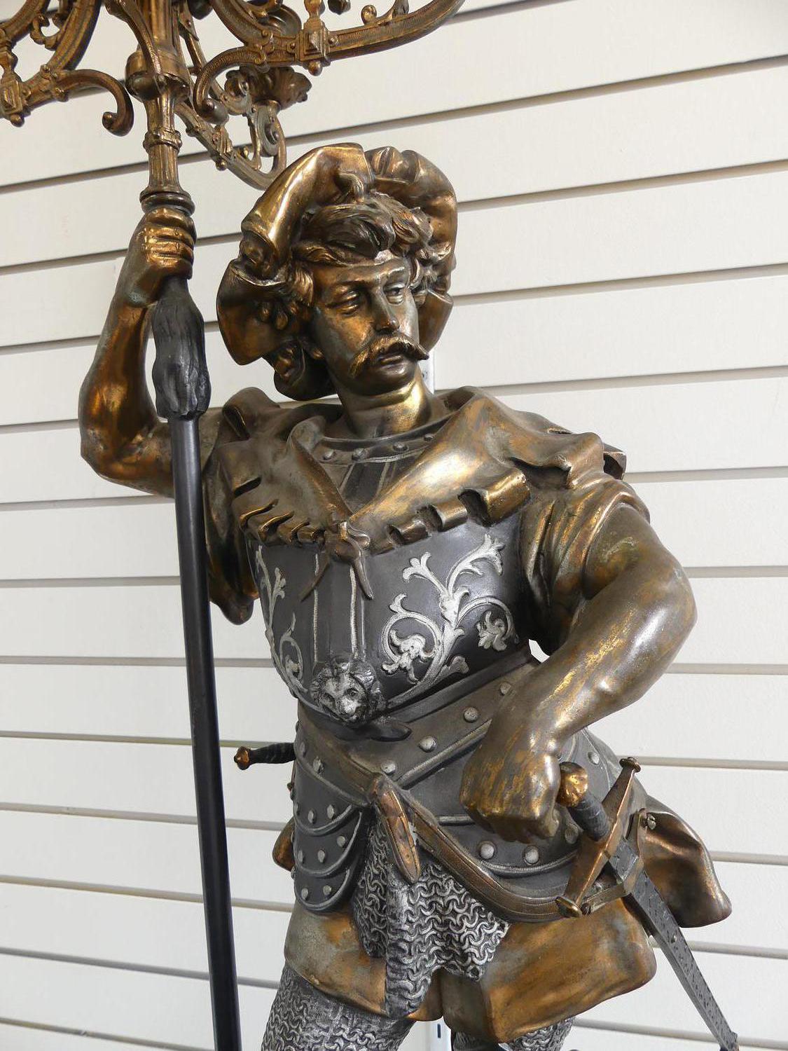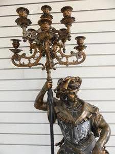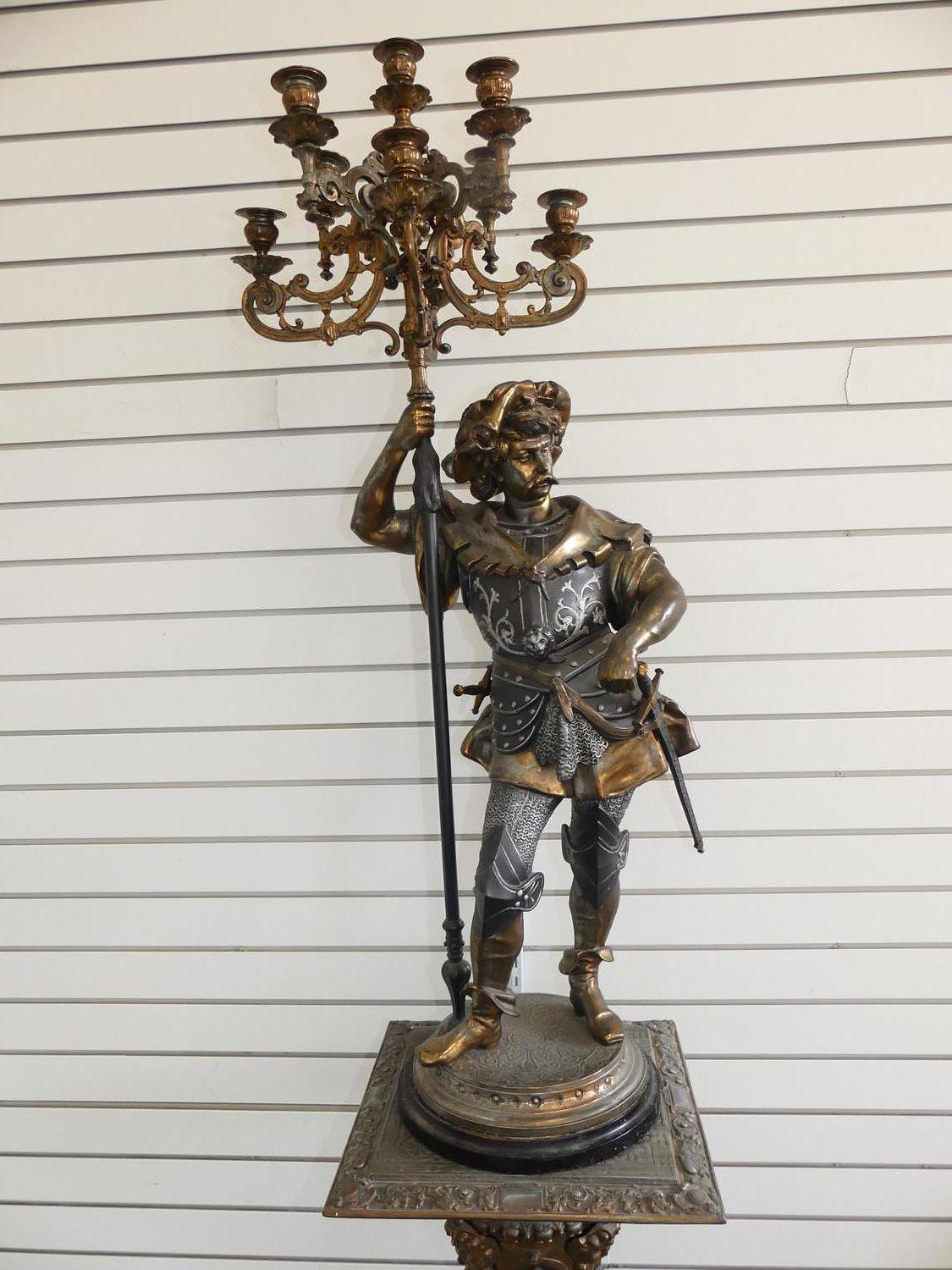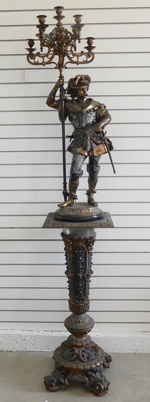 early 20th century figural candelabra of "sir walter raleigh" on matching pedestal, ht. 77"