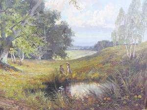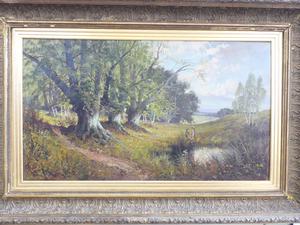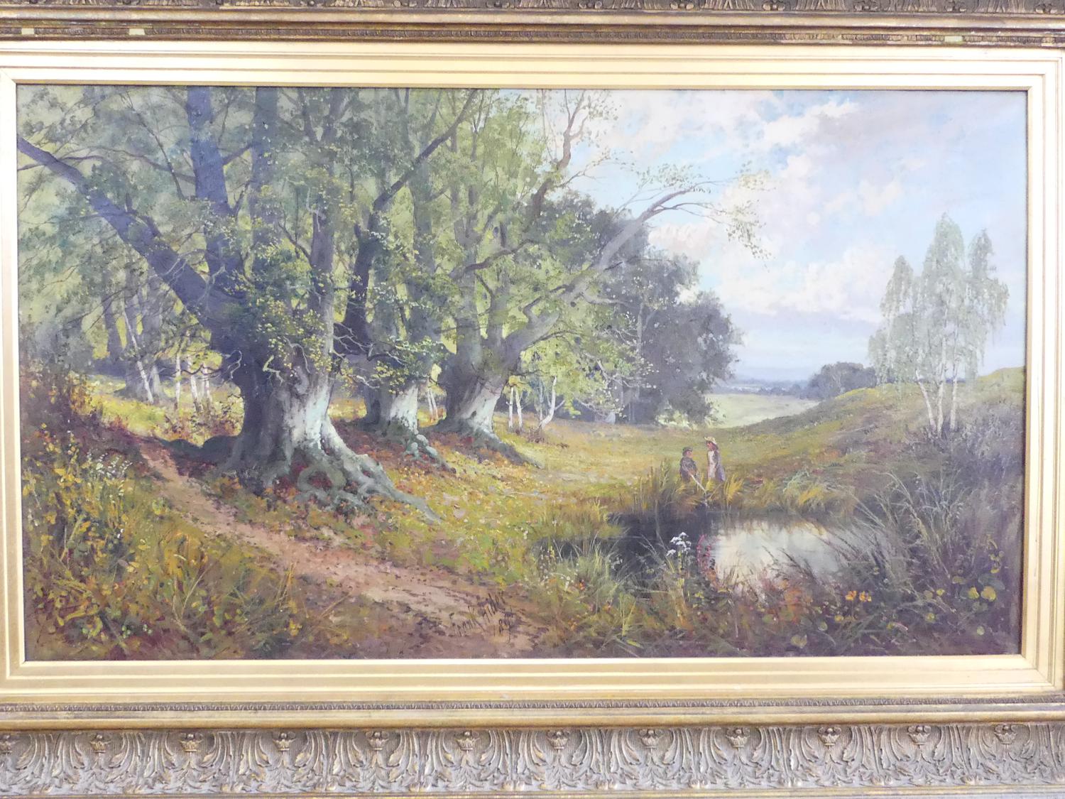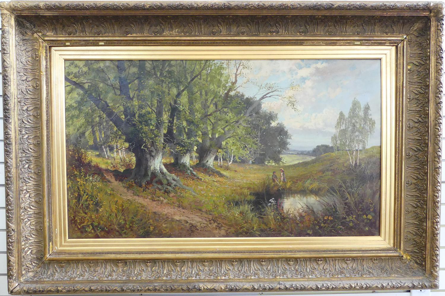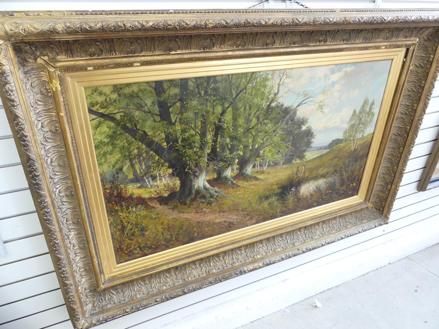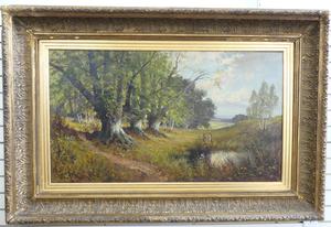 frank hider (1861-1933), dated 1891, oil on canvas, 24" x 42", "edge of the woods"