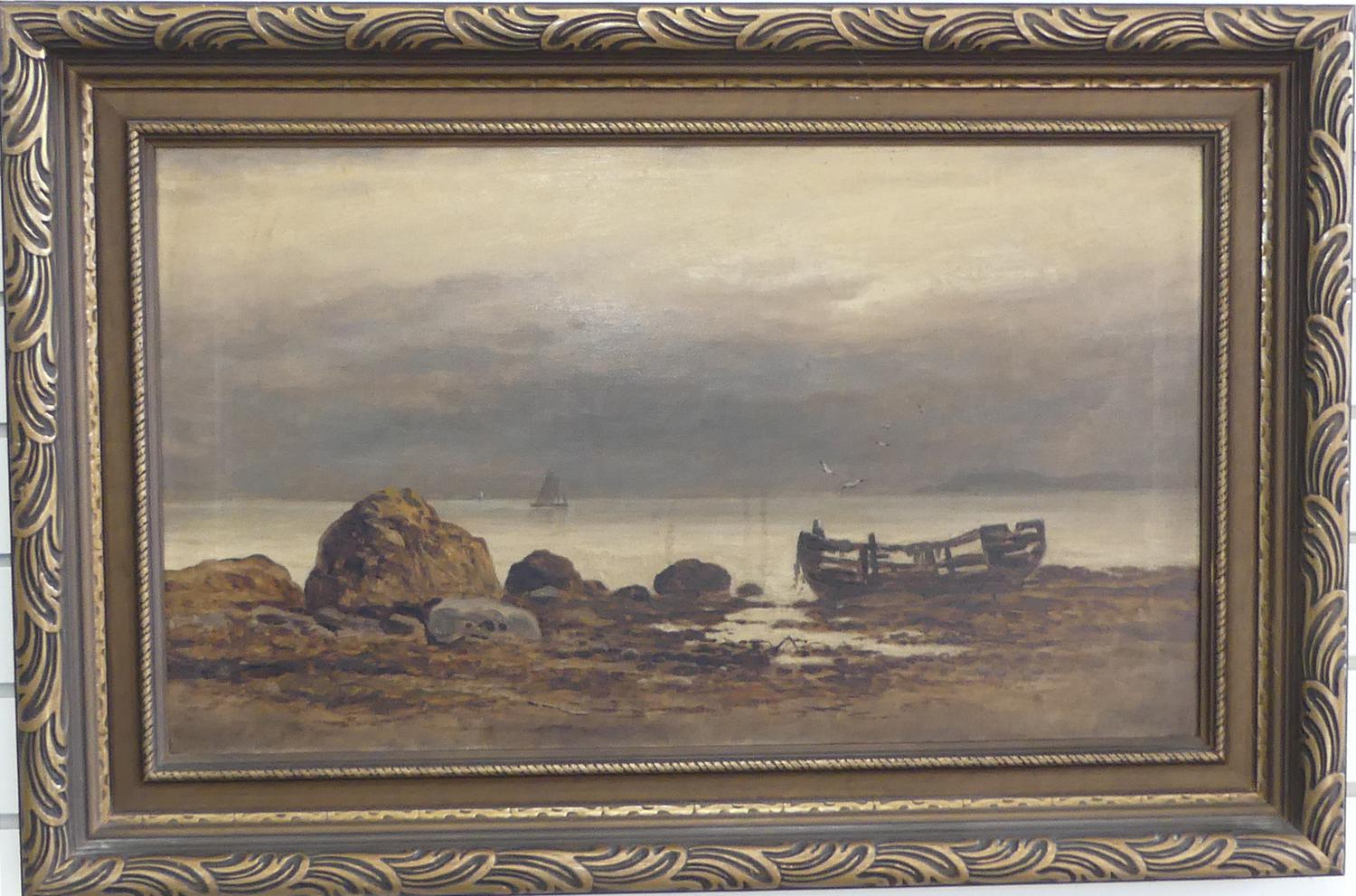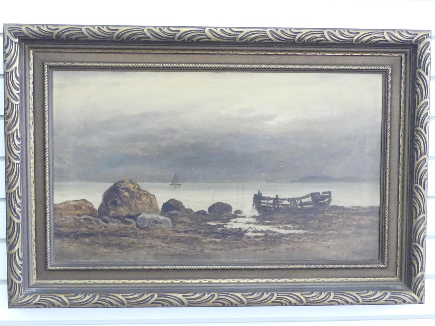 late 19th century english school oil on canvas, 14" x 24", "a welsh scene", circa 1893