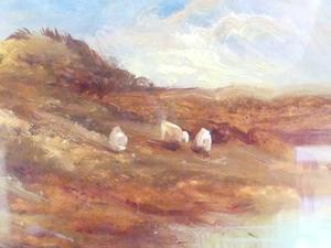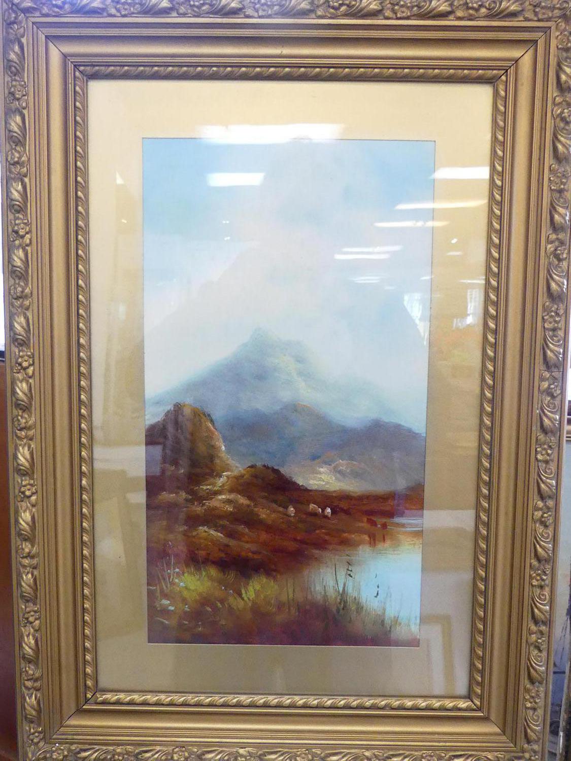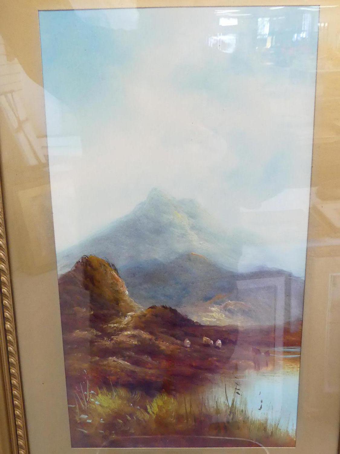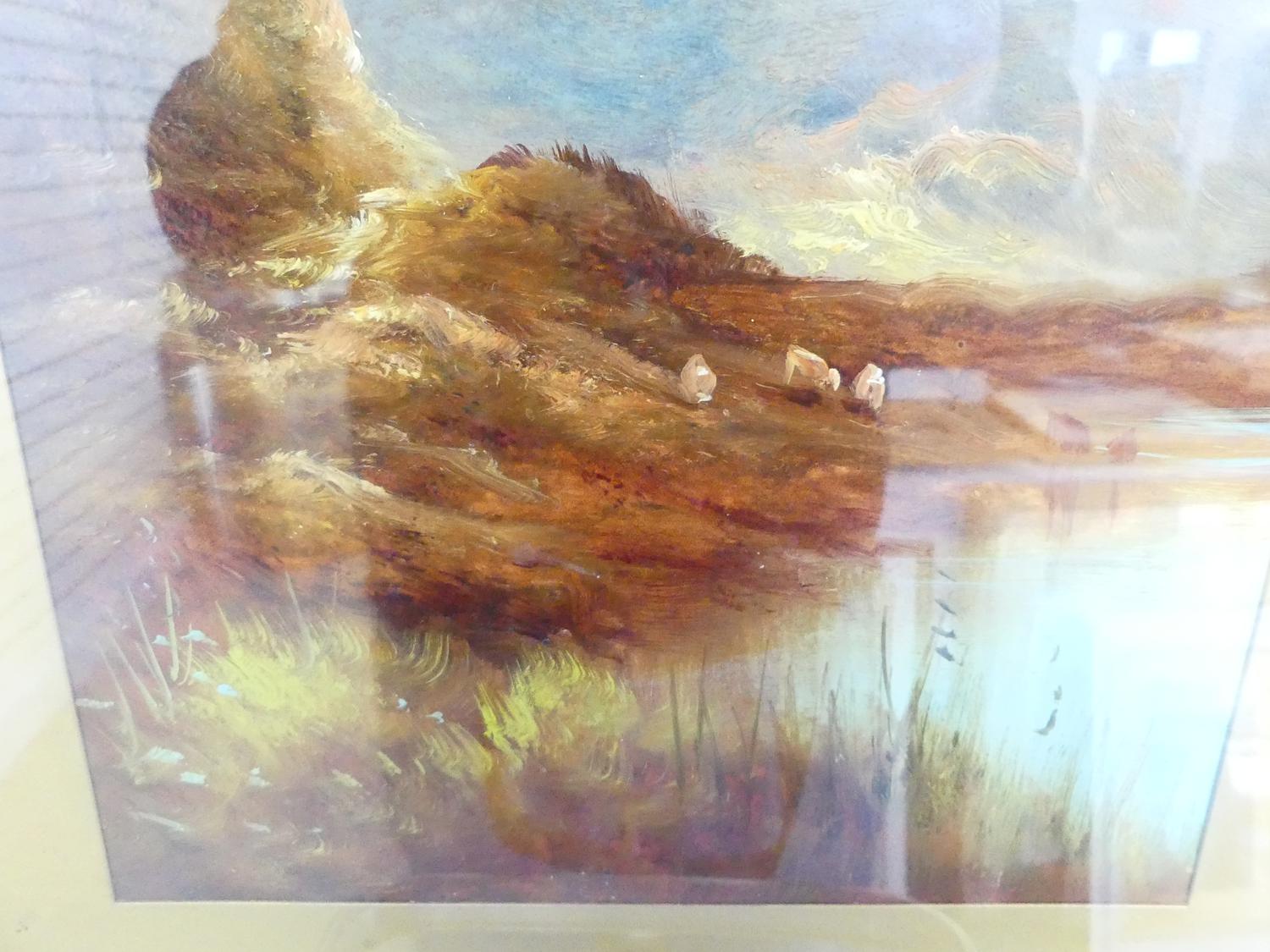 early 20th century scottish school, oil on board, 18" x 10", "highland landscape with cattle"