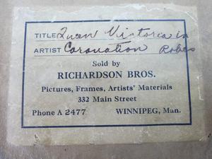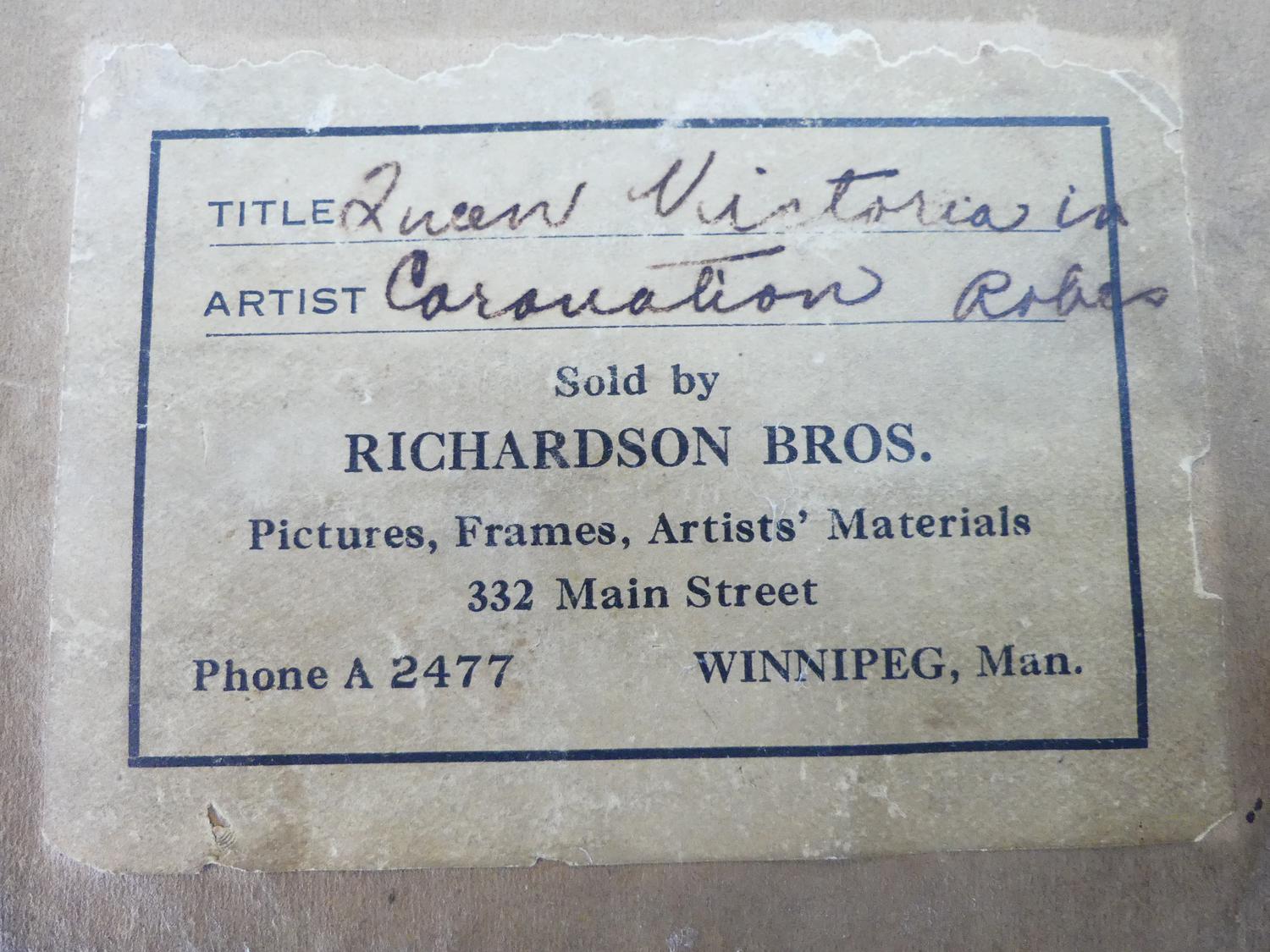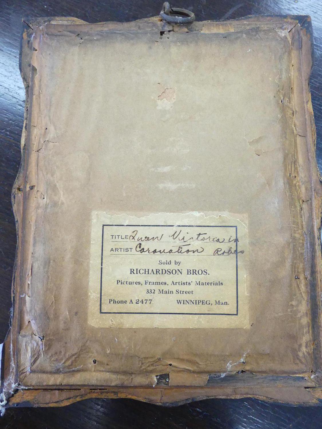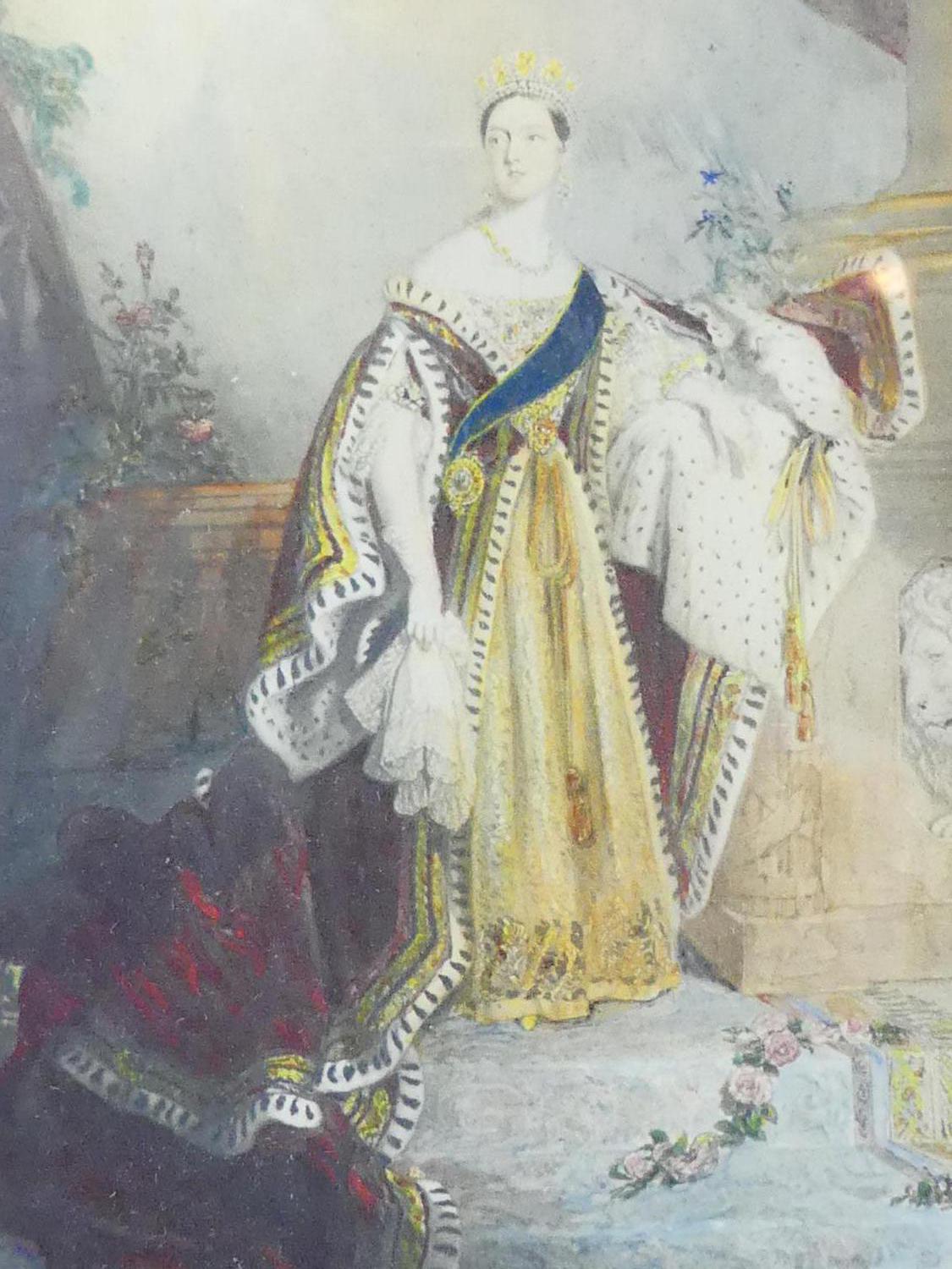 19th century gilt framed hand coloured print "queen victoria coronation robes", overall 9" x 7 1/4"