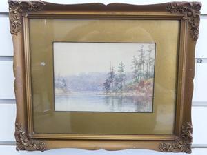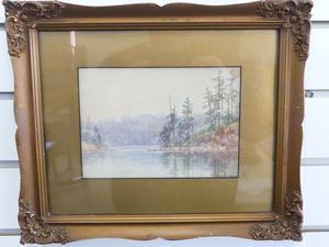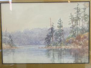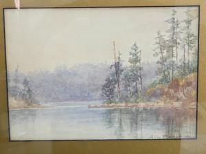 alice blair thomas (1857-1945), watercolour, 4 3/4" x 6 1/2", "lake scene"