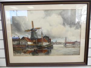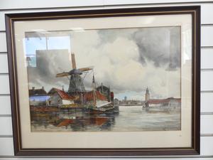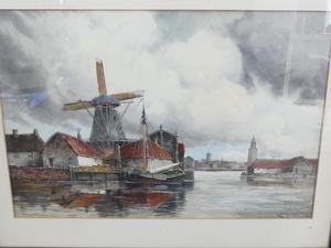 hermanus ii koekkoek (louis van staaten, 1836-1909), watercolour, 15" x 22", "timber mill - haarlem"