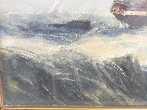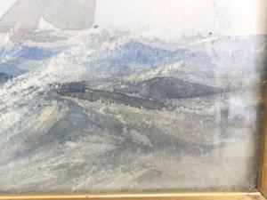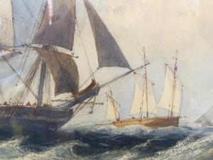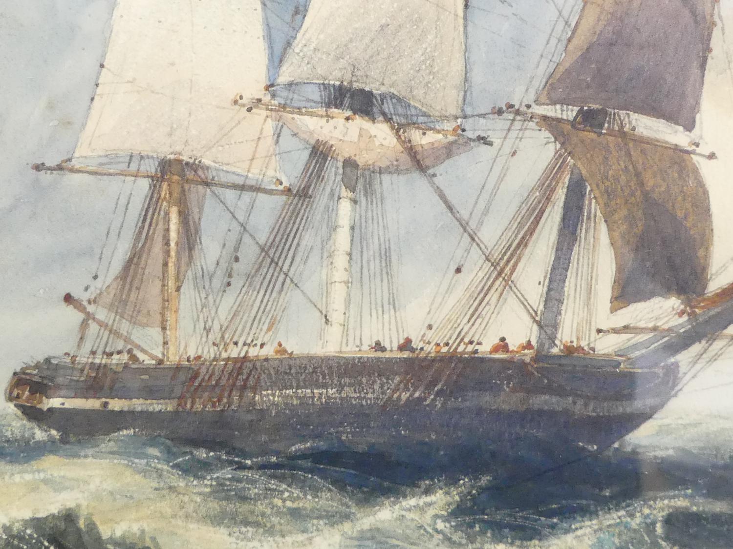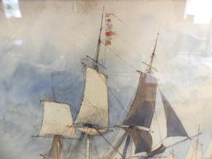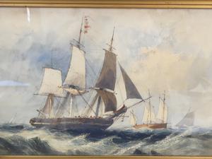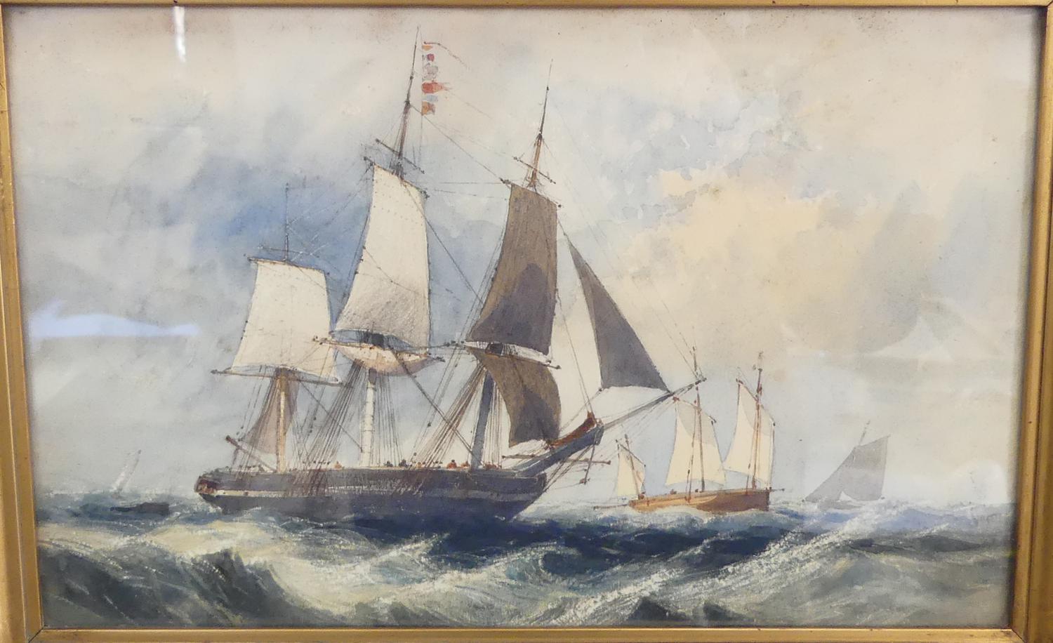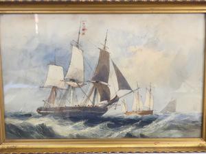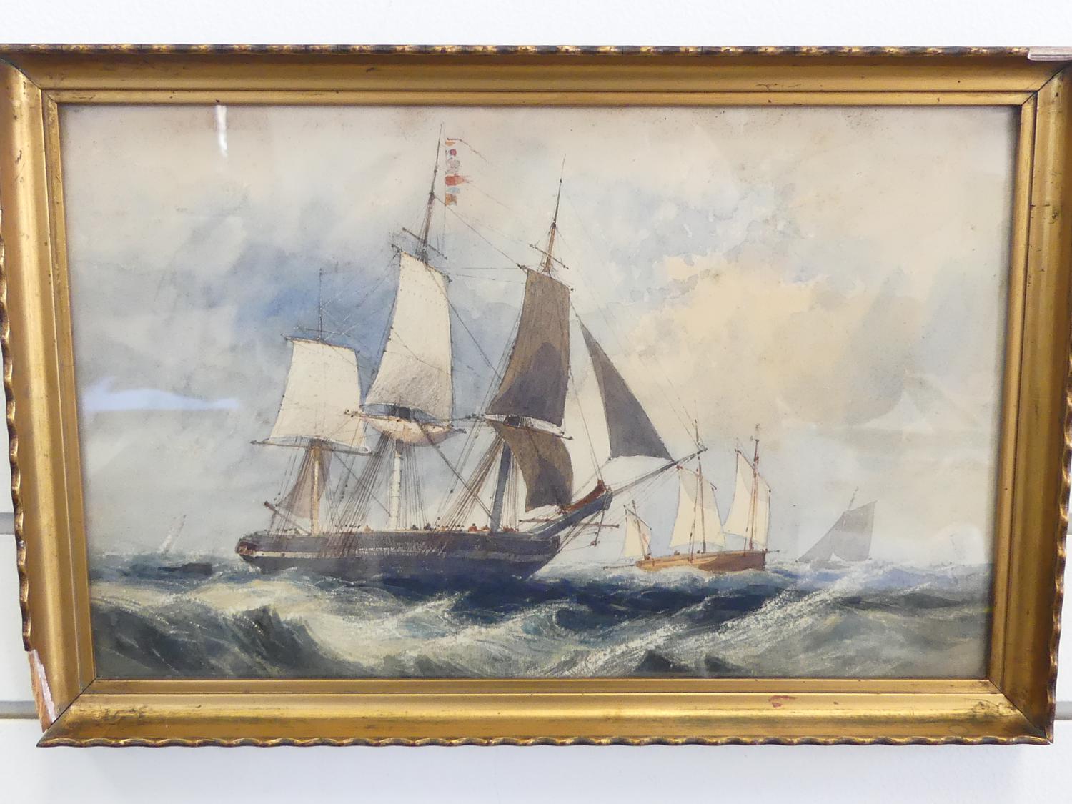 19th century british marine school watercolour, unsigned, 9" x 13 1/2", "tall ship in full sail"