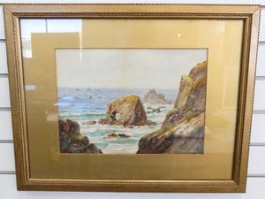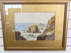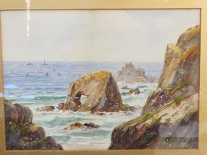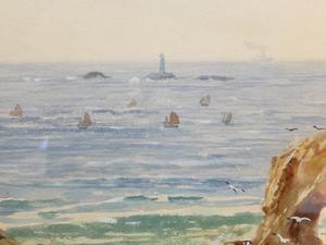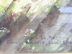 j. le. breton, watercolour, 9" x 12 1/2", "armed knights - lands end"