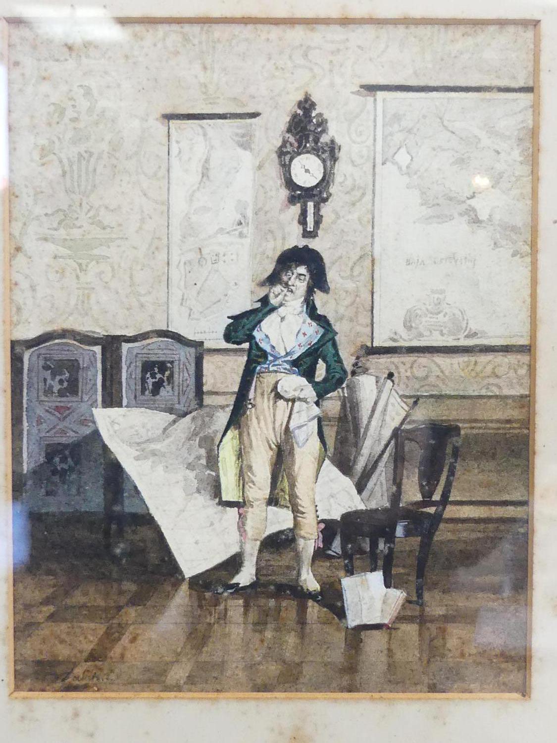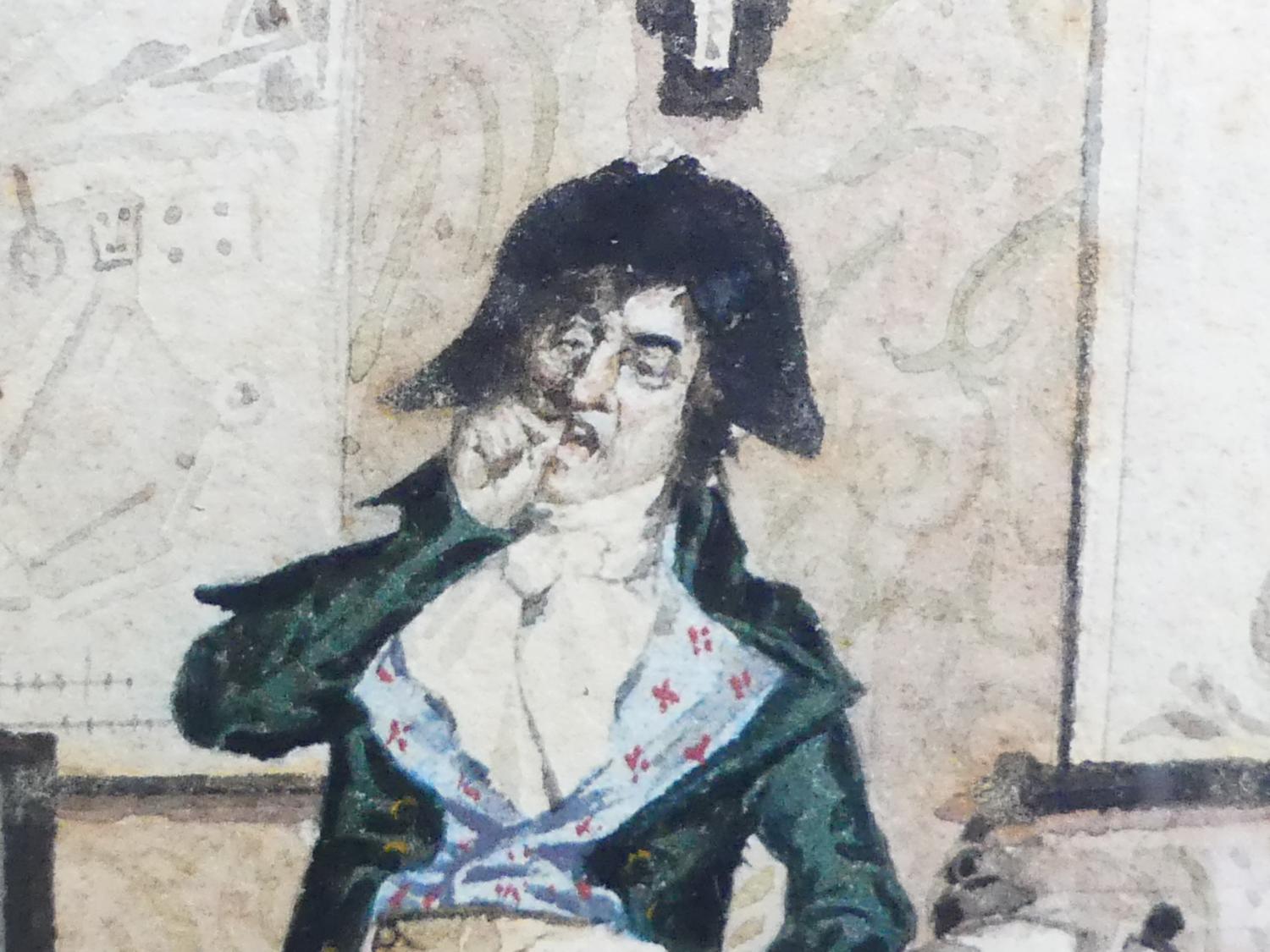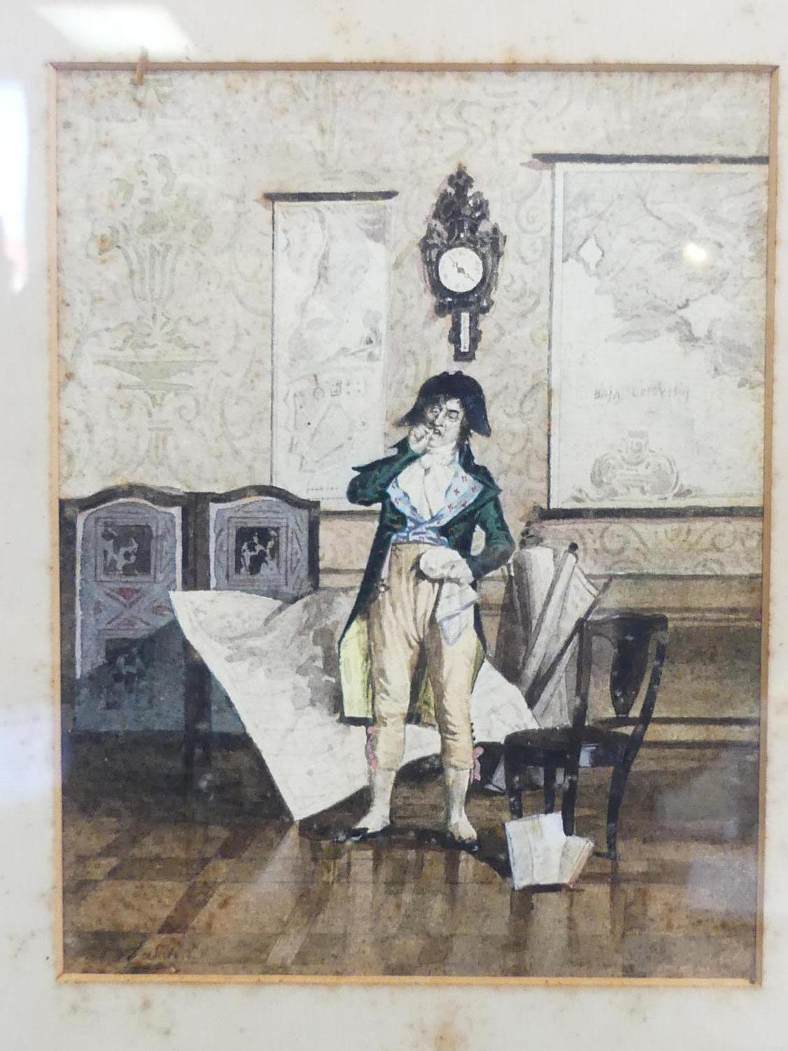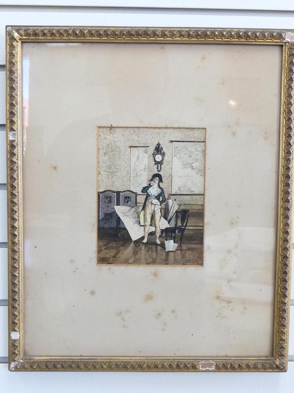 19th century watercolour signed baldini, 7" x 5 1/4", "interior - man with maps"