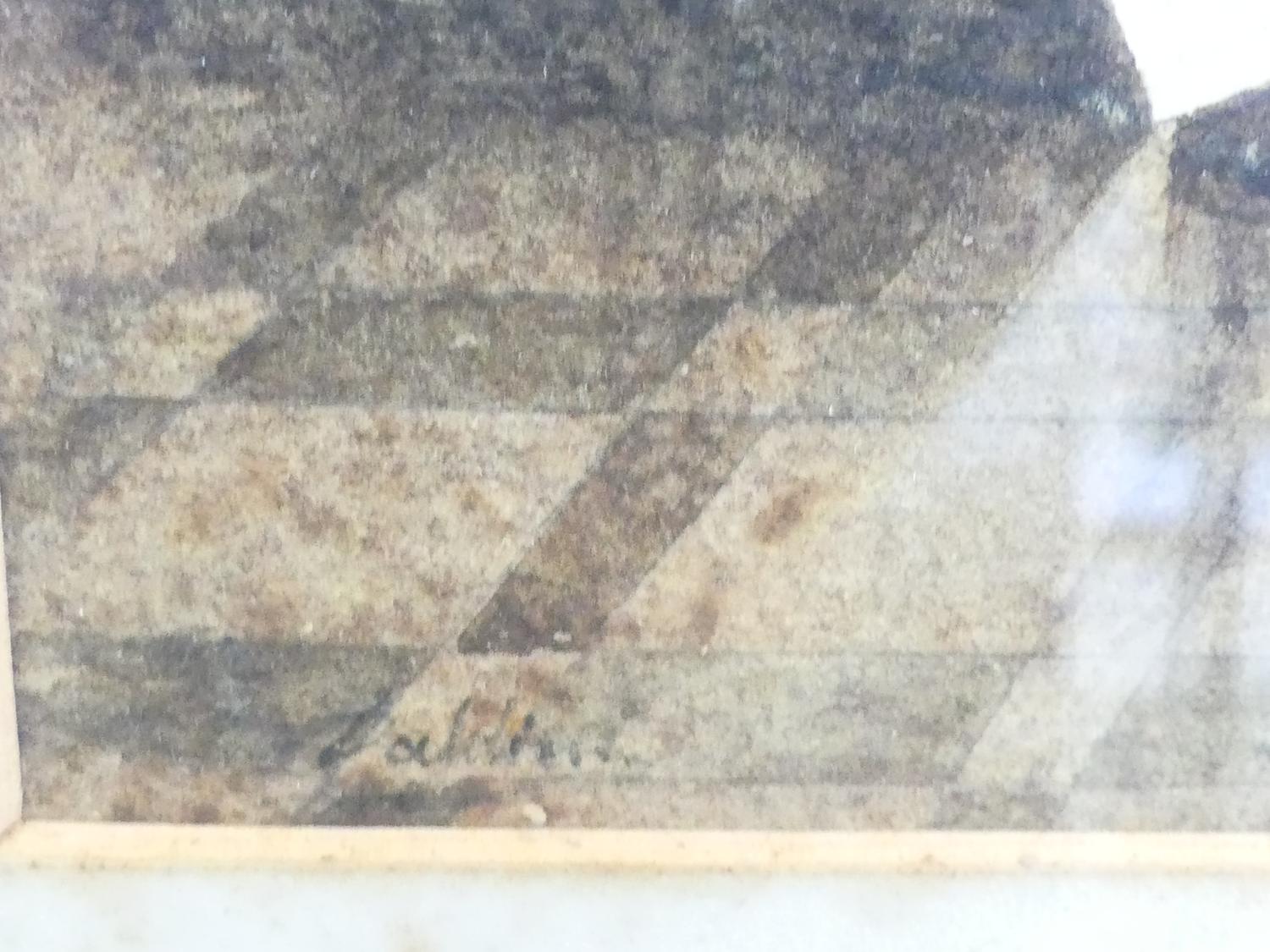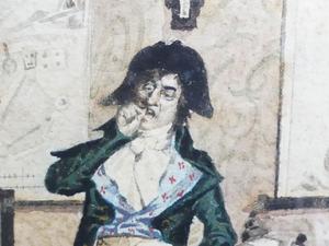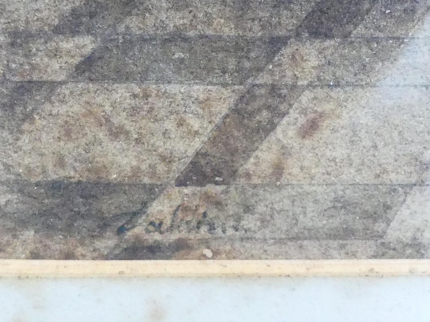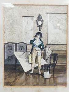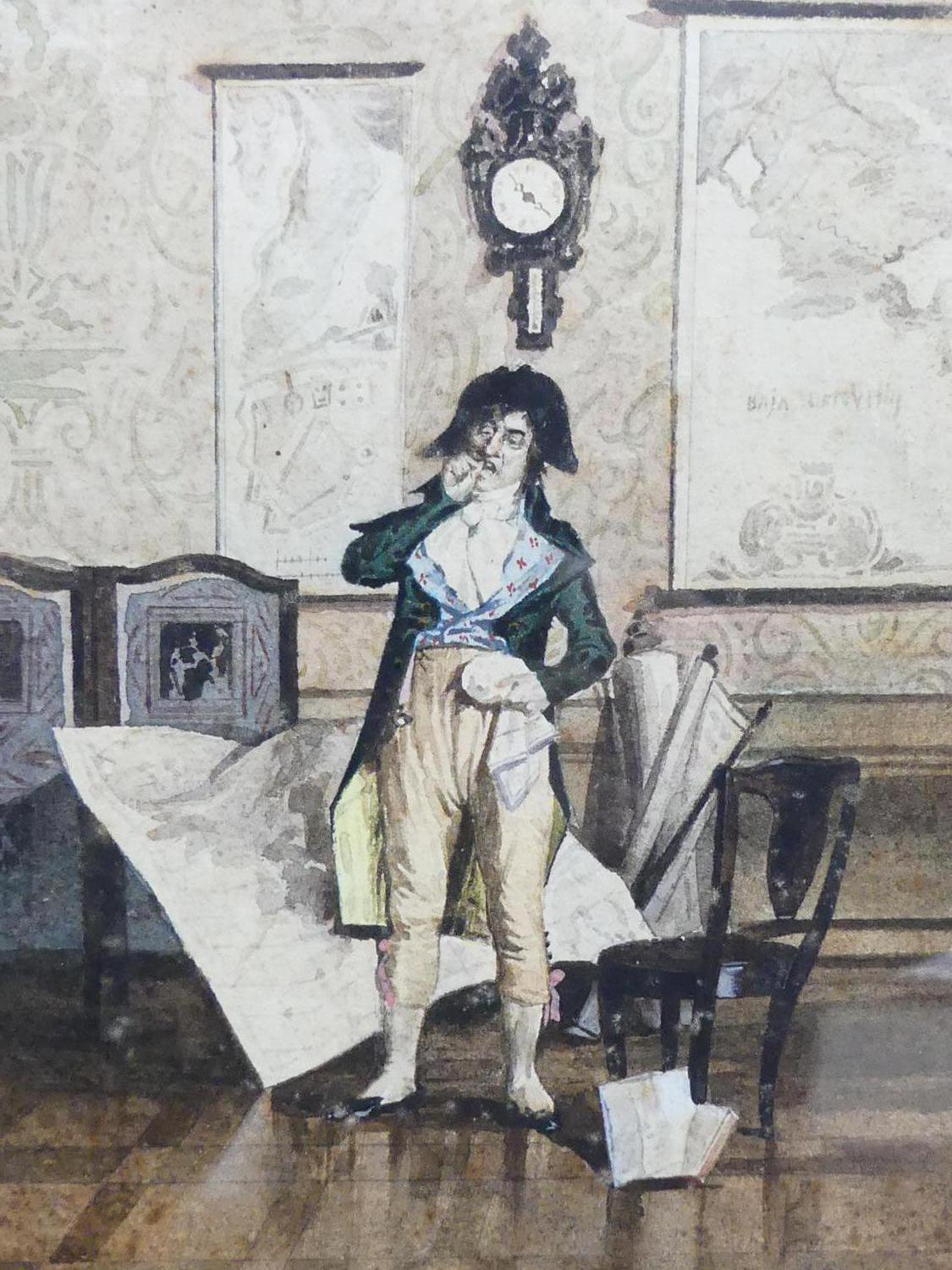 19th century watercolour signed baldini, 7" x 5 1/4", "interior - man with maps"