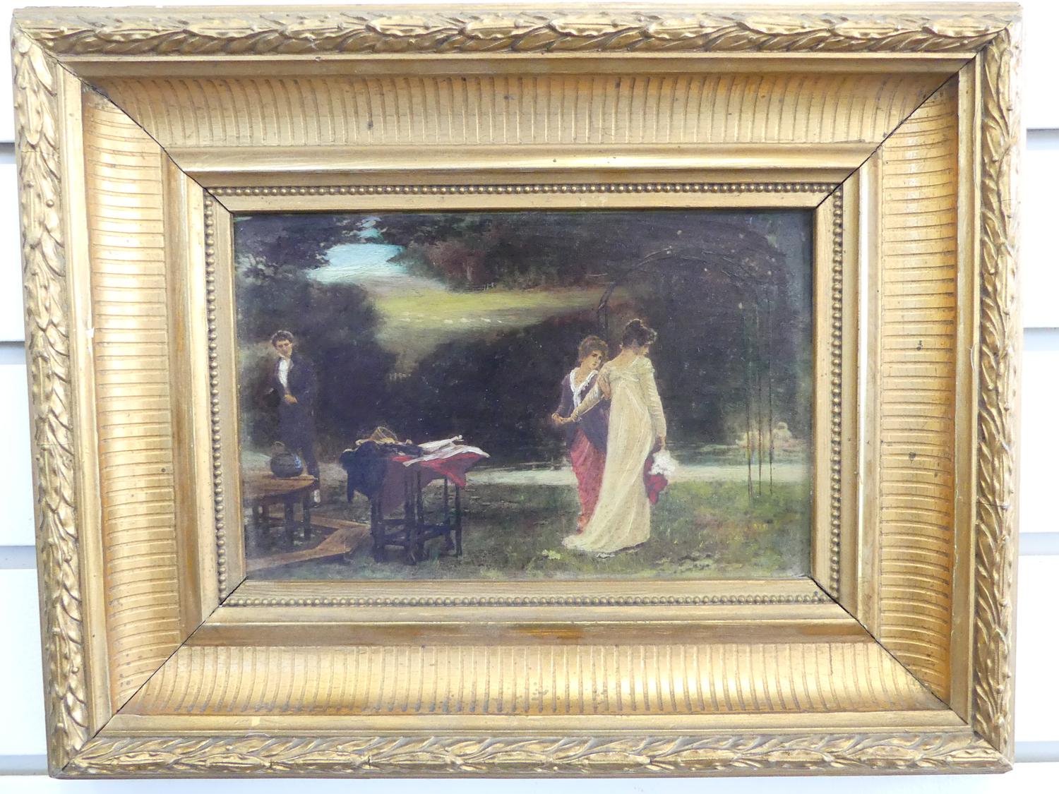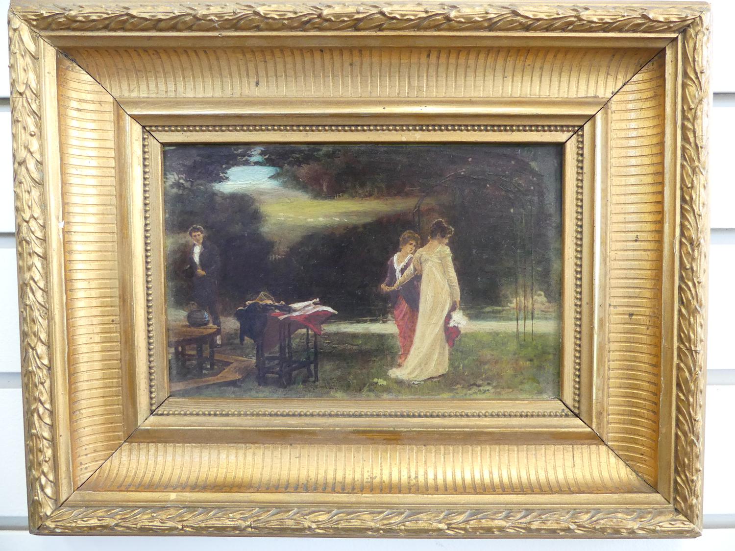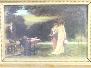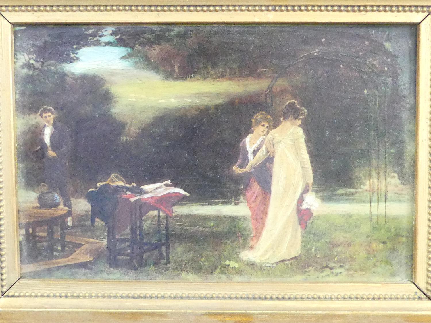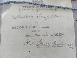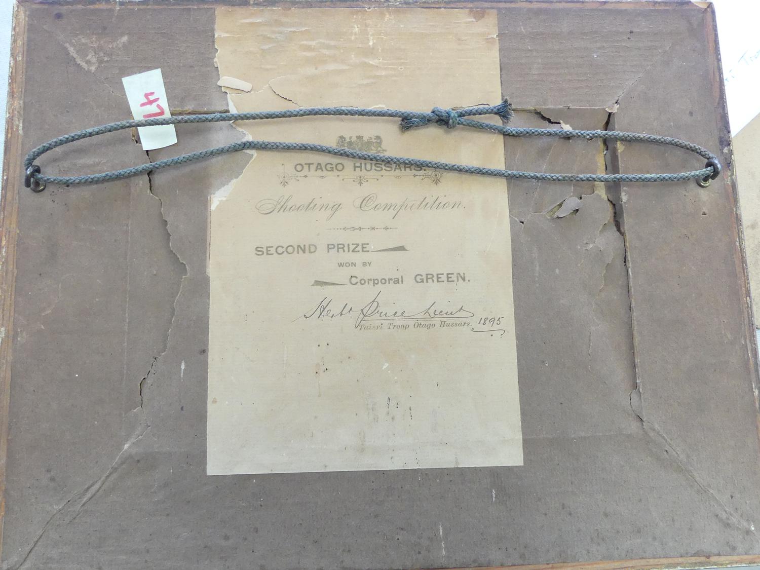 19th century hand painted photograph, 5" x 8", "garden scene" - won as second place prize tuiere troop otago hussars 1895
