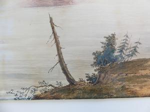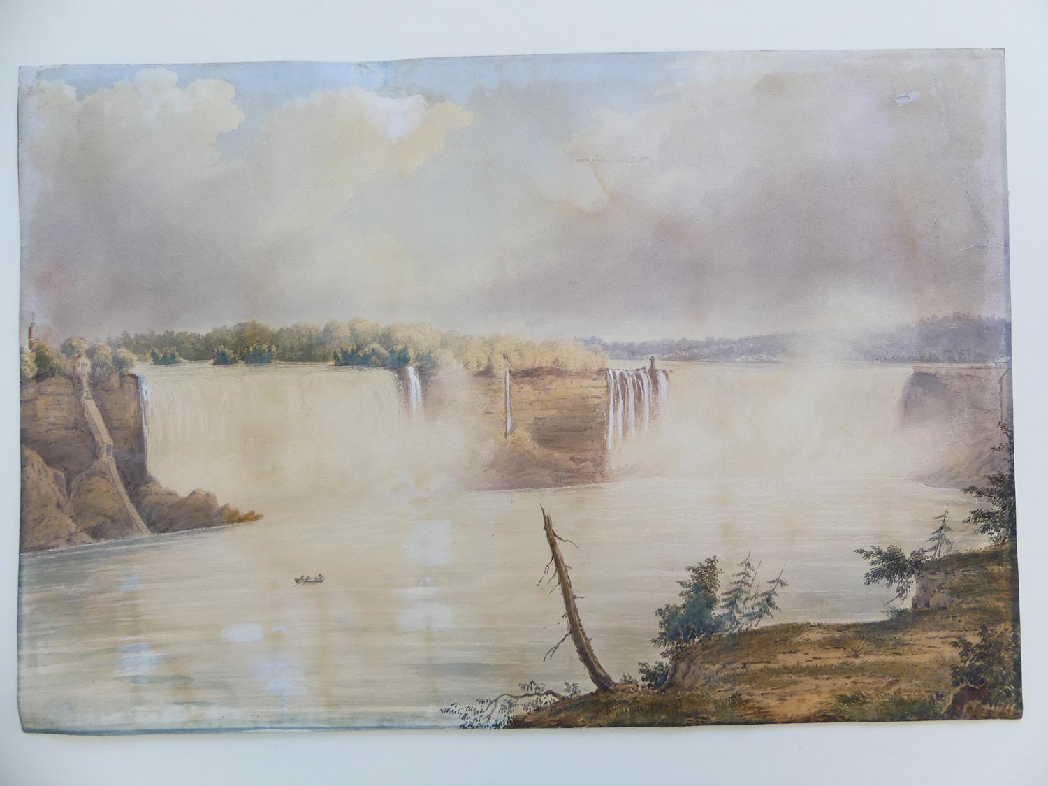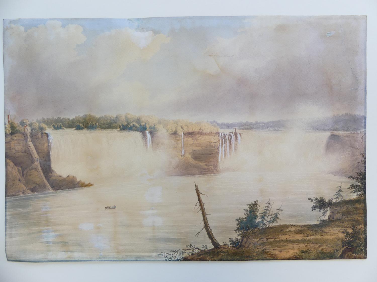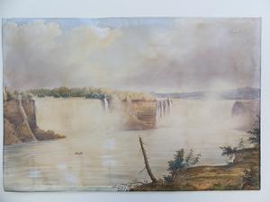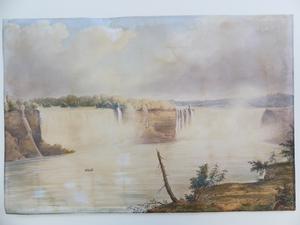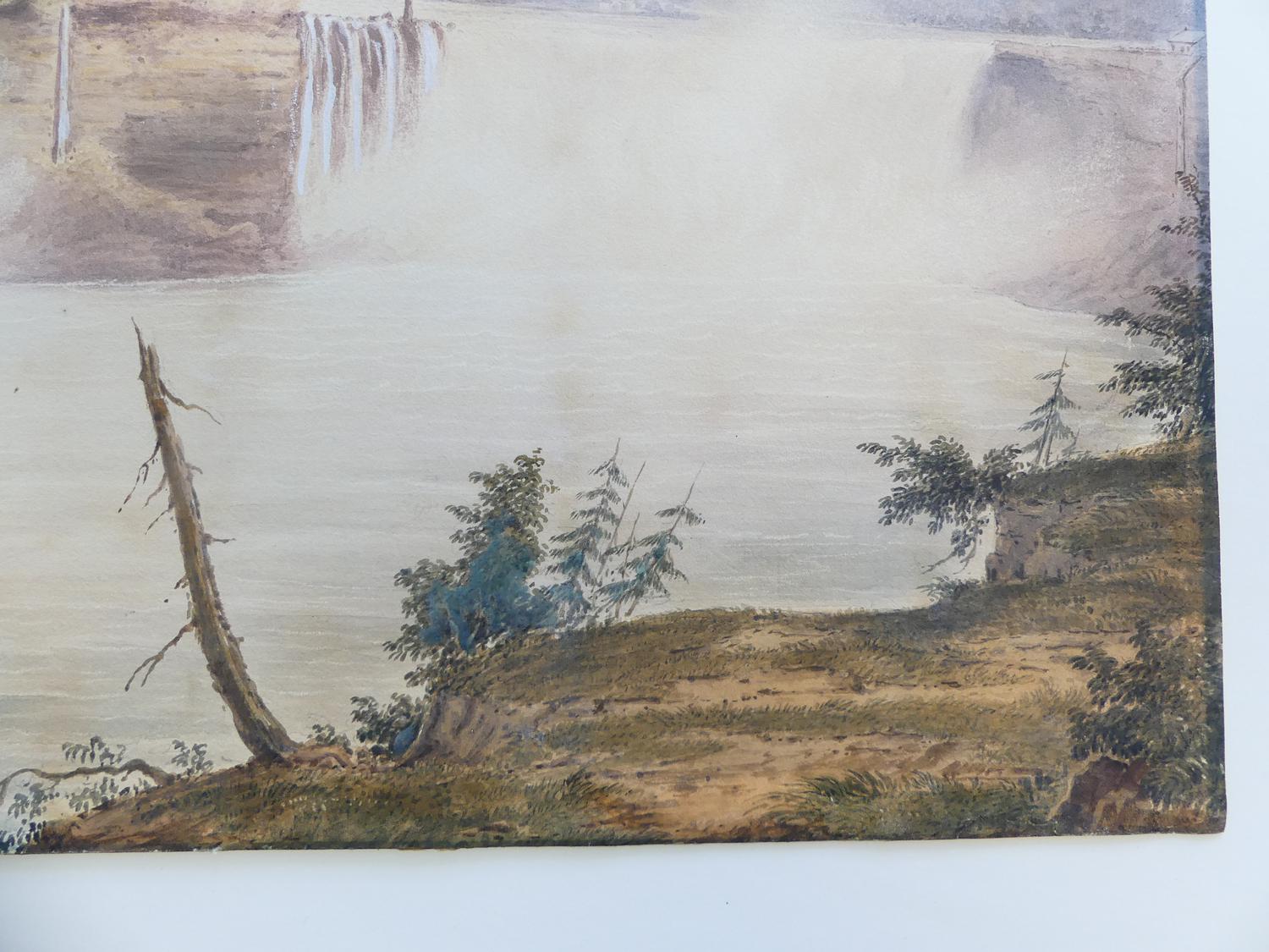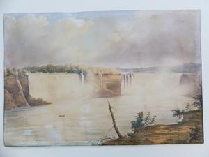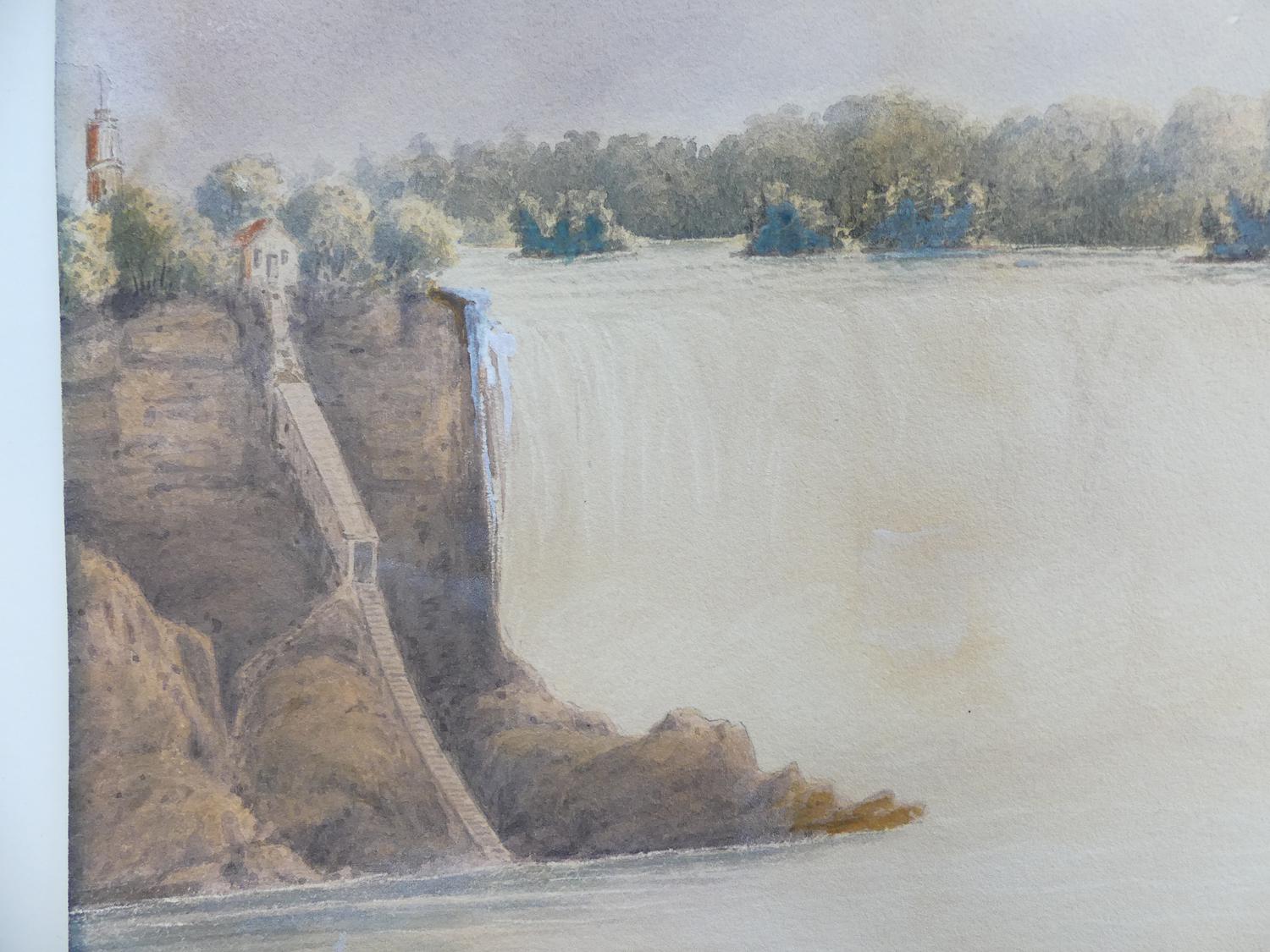 19th century watercolour, unsigned, 13 1/2" x 20", "falls of niagara - from below the clifton notch"