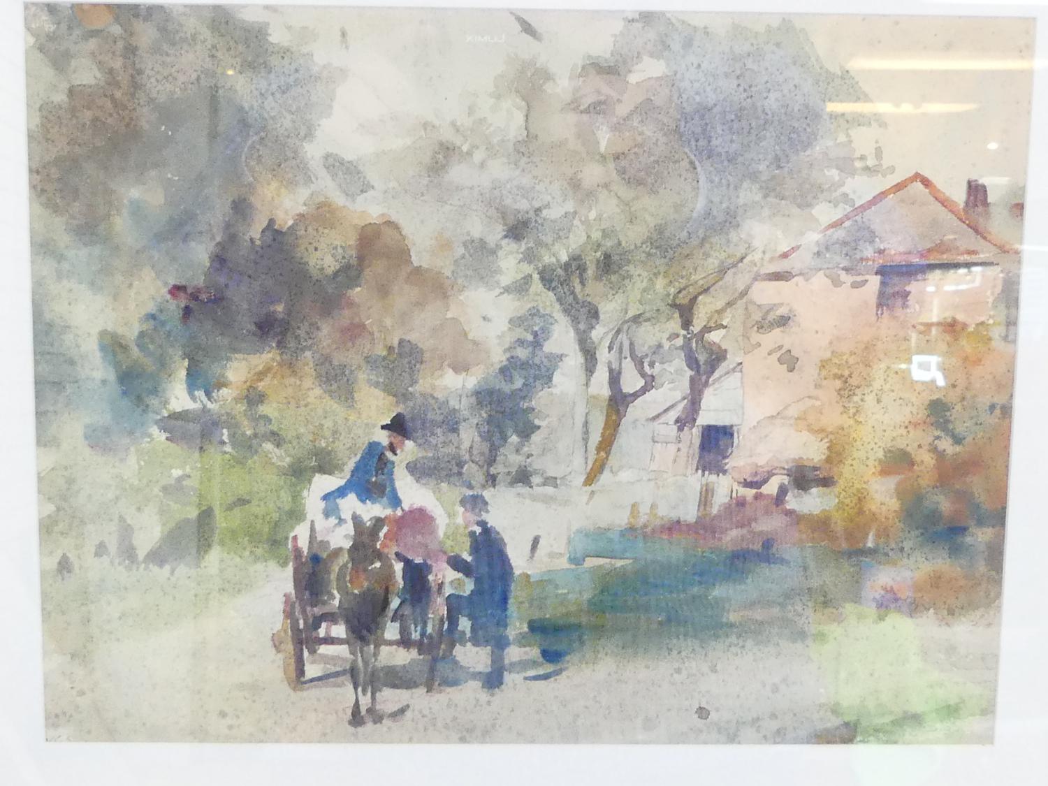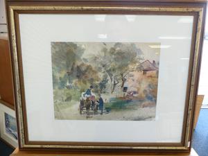 william christian symons, (1845-1911) double sided watercolor, 9 1/2" x 12 `1/4", "landscapes with figures