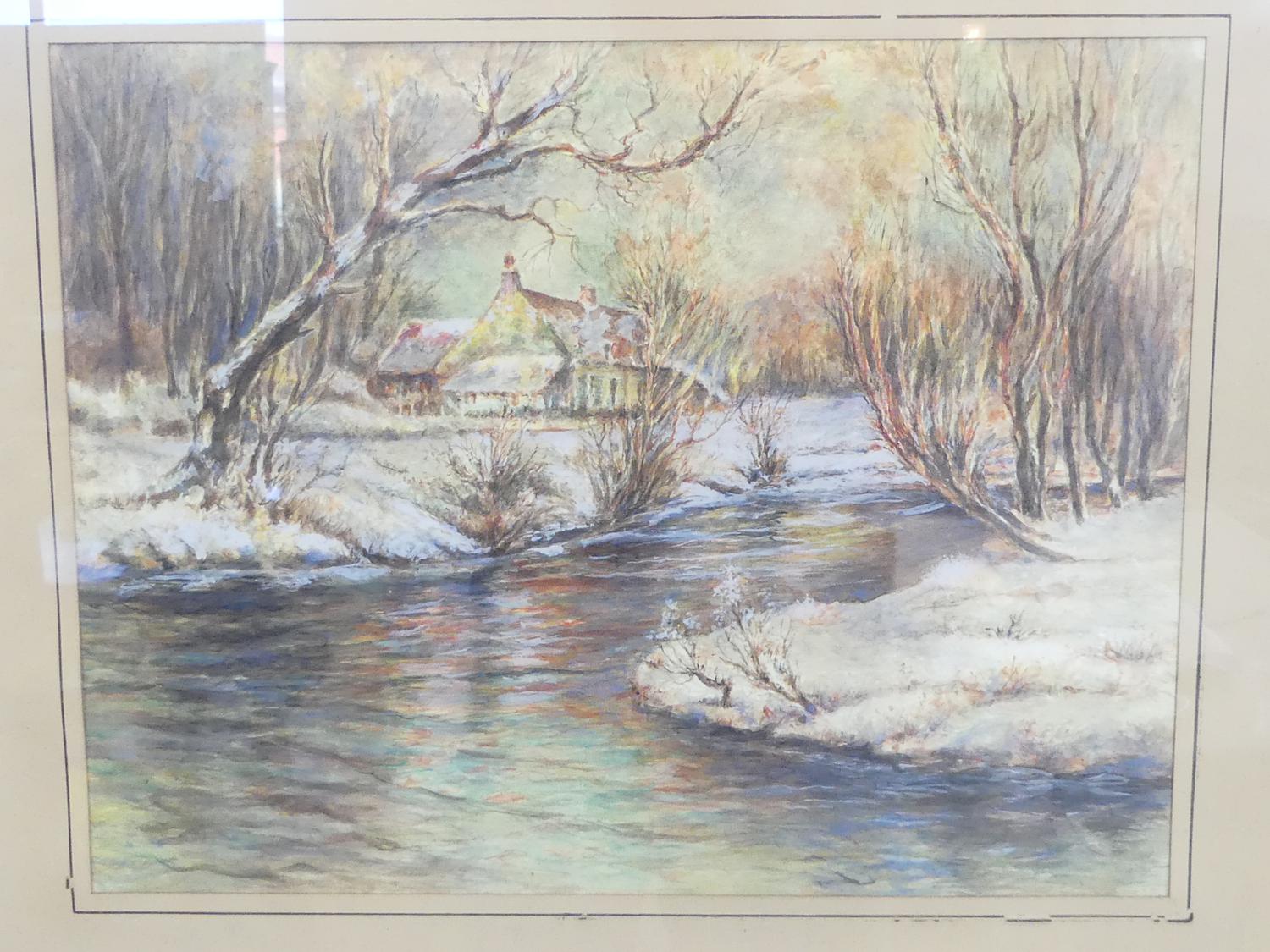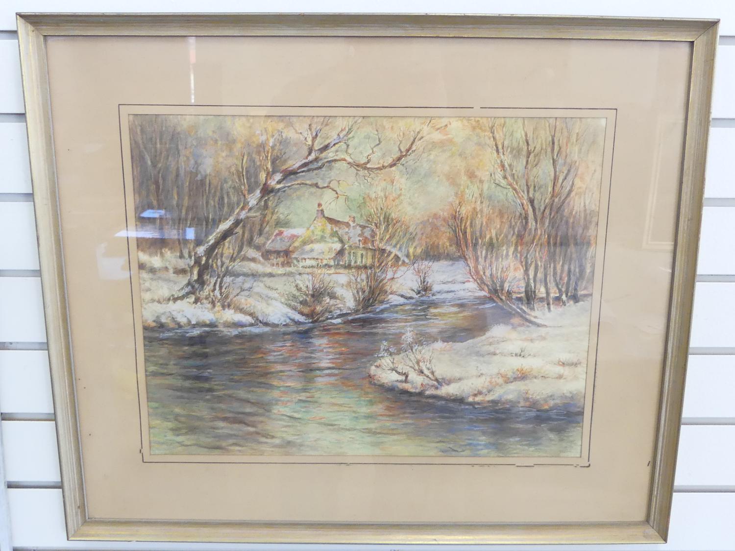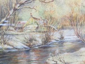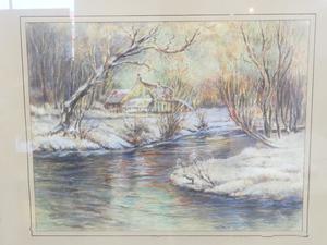 early 20th century canadian school watercolour, unsigned, 13 1/2" x 17 1/2", "winter river scene"