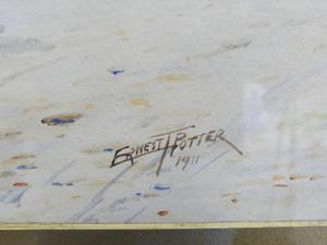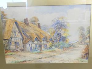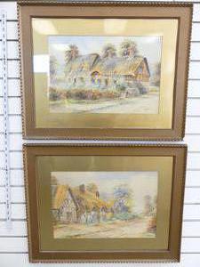ernest t. potter, pair of watercolours, 12" x 17 1/2", "english thatched houses"
