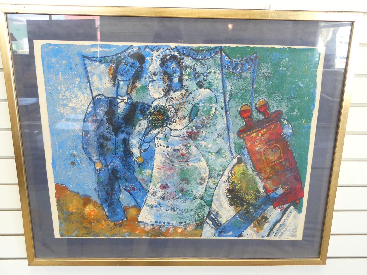 theo tobiasse (1927-2012), lithograph, 20" x 26", "wedding scene"