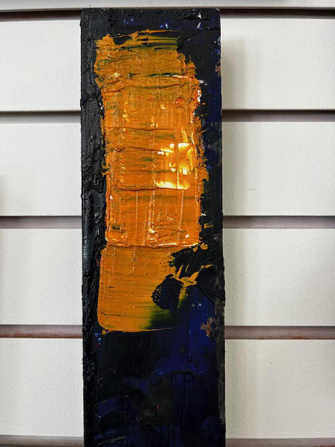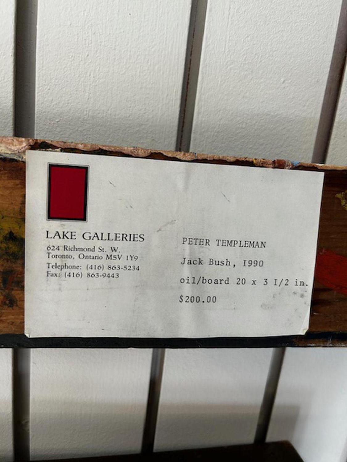 peter templeton, d.1990, oil on wood, 20" x 3 1/2", "jack bush"