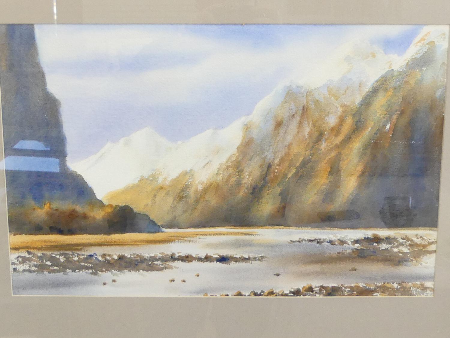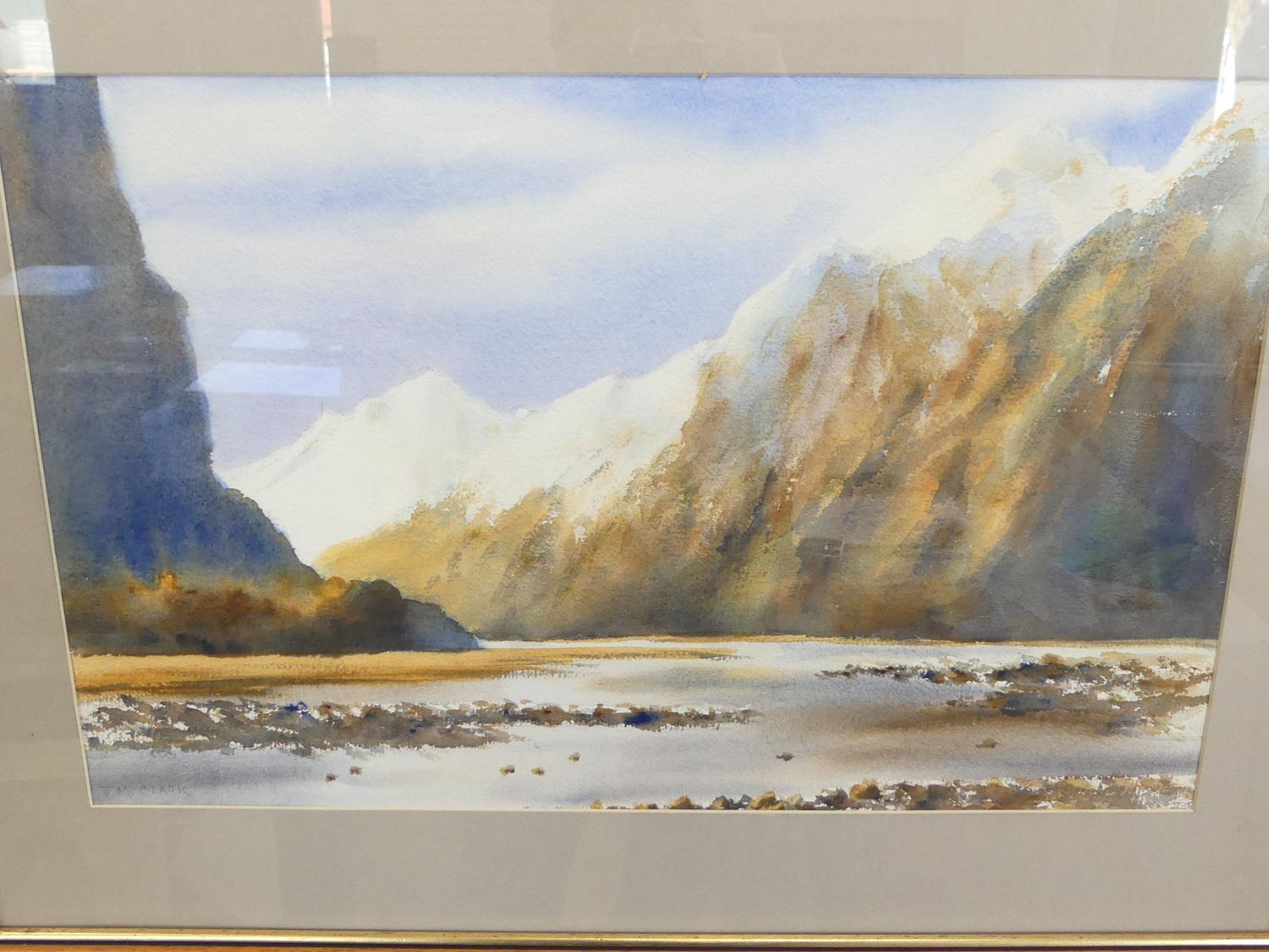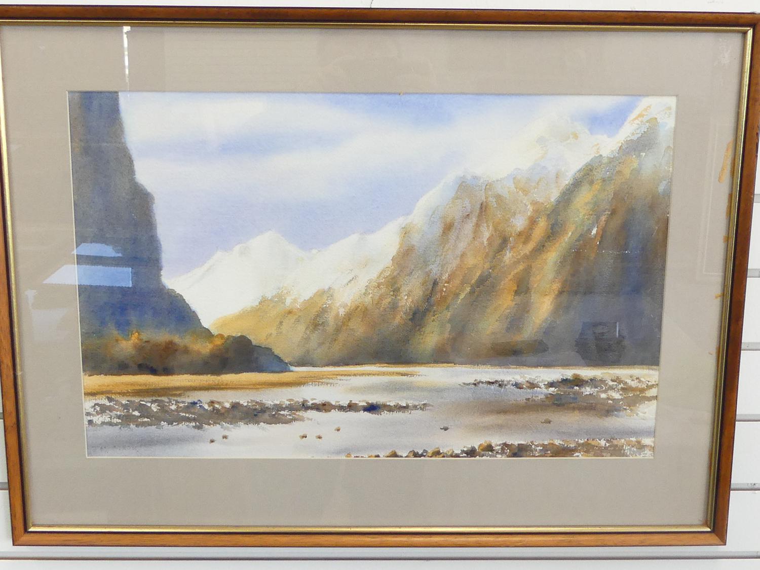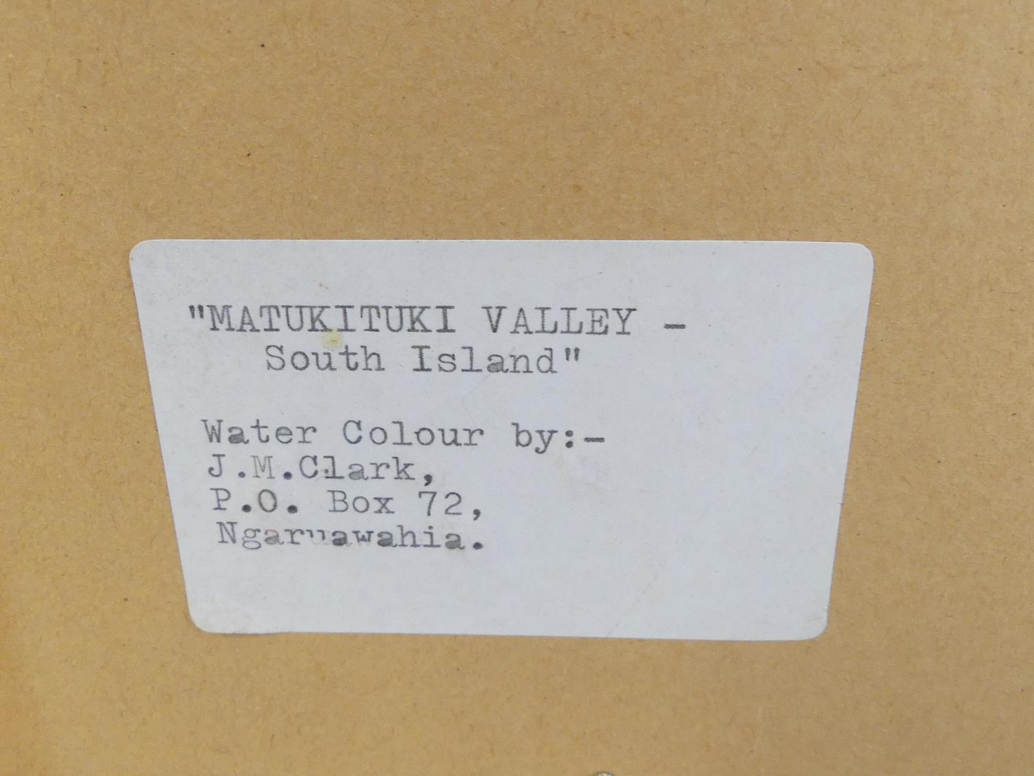 j.m. clark, watercolour, 14 1/2" x 23", "matukitaki valley - south island, new zealand"