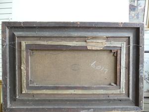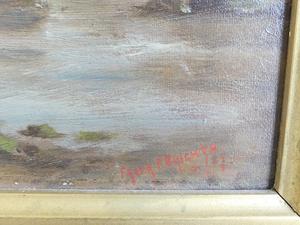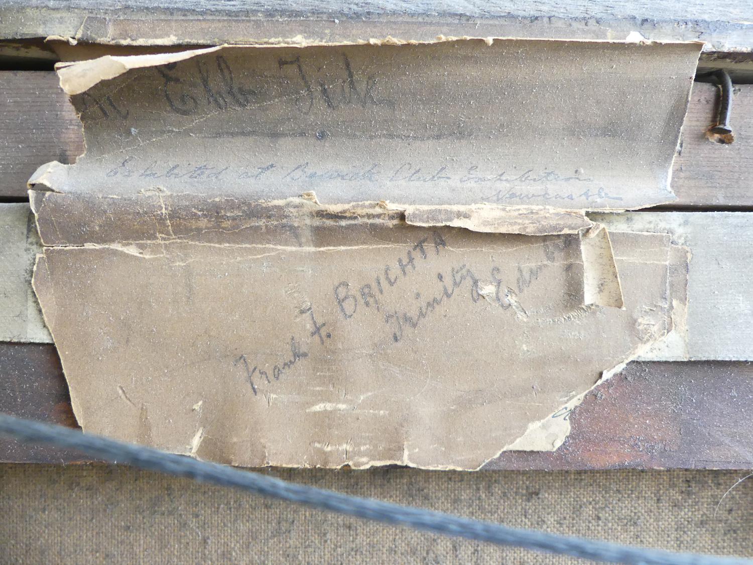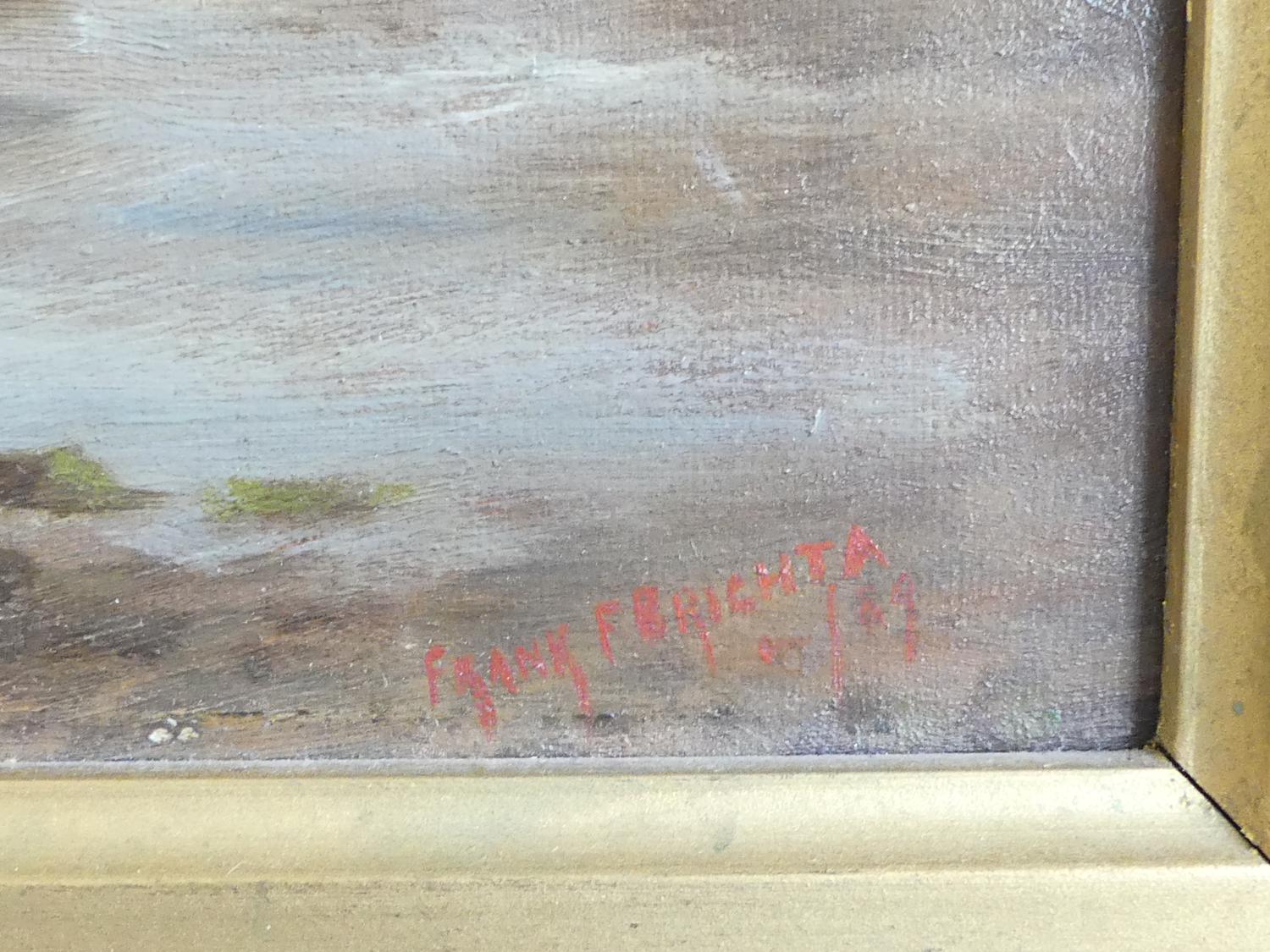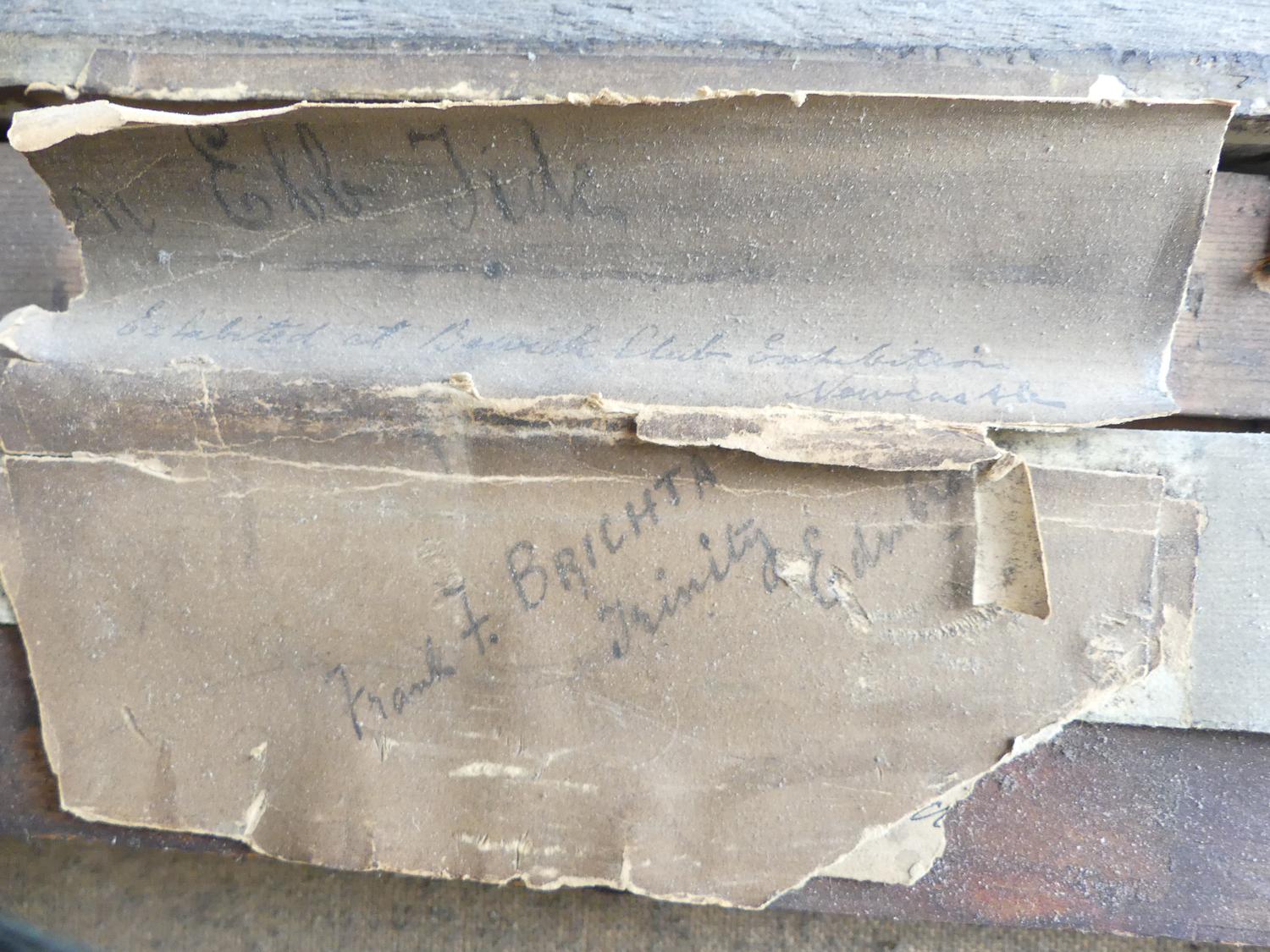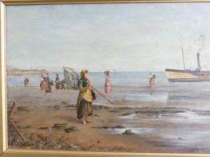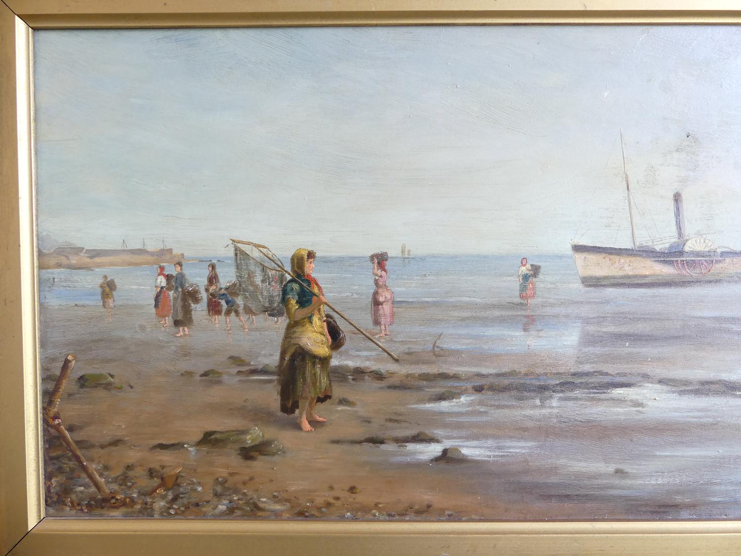 frank f. brichta (act.1888-1898), oil on canvas, 12" x 24", "shore scene with figures and paddle steamer"