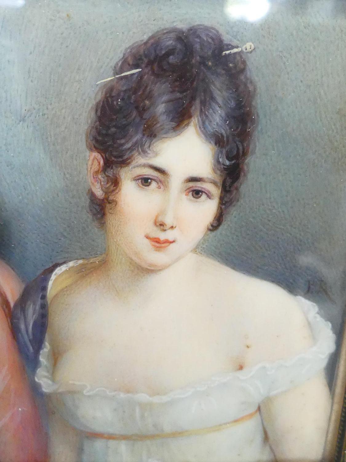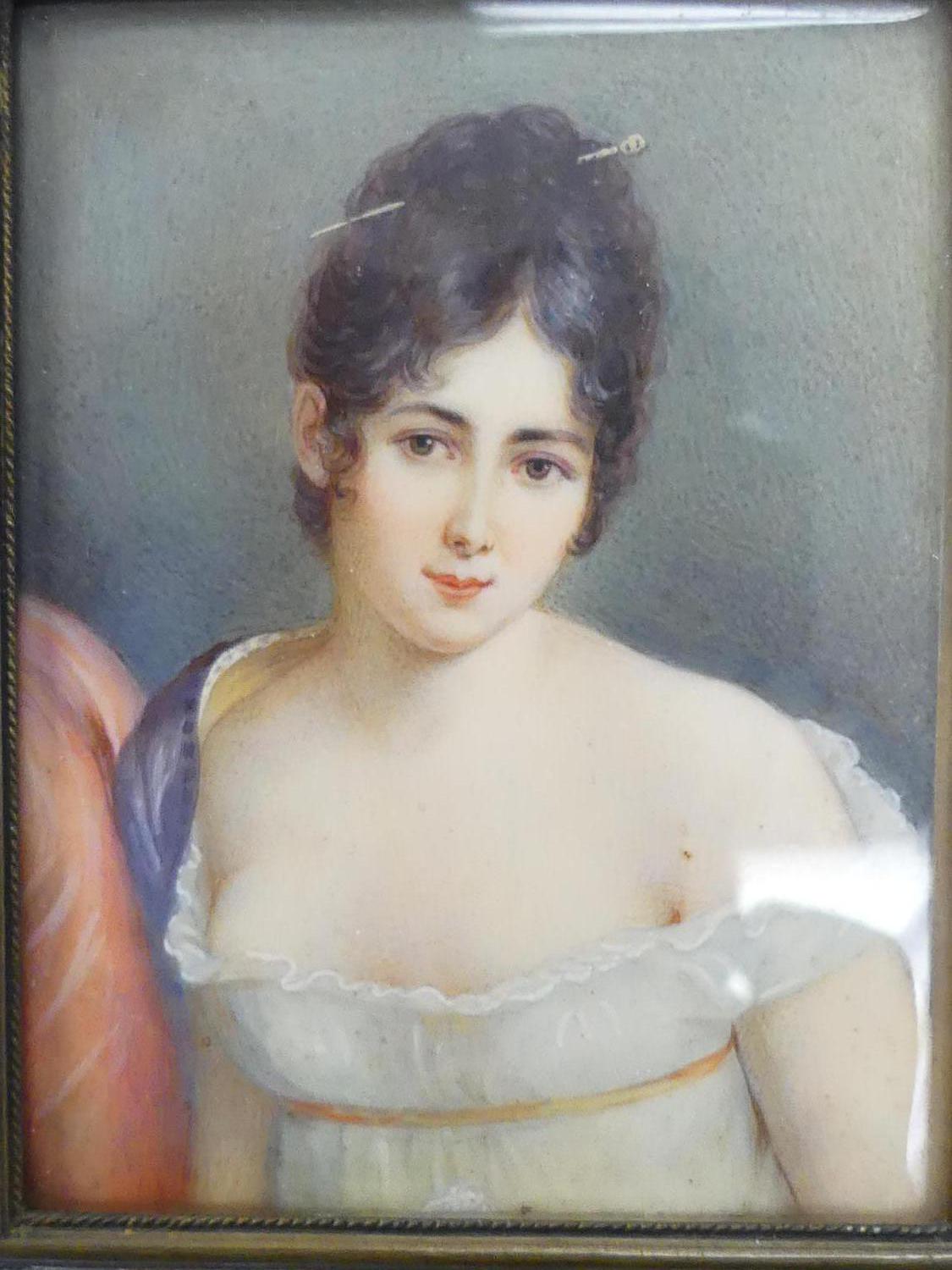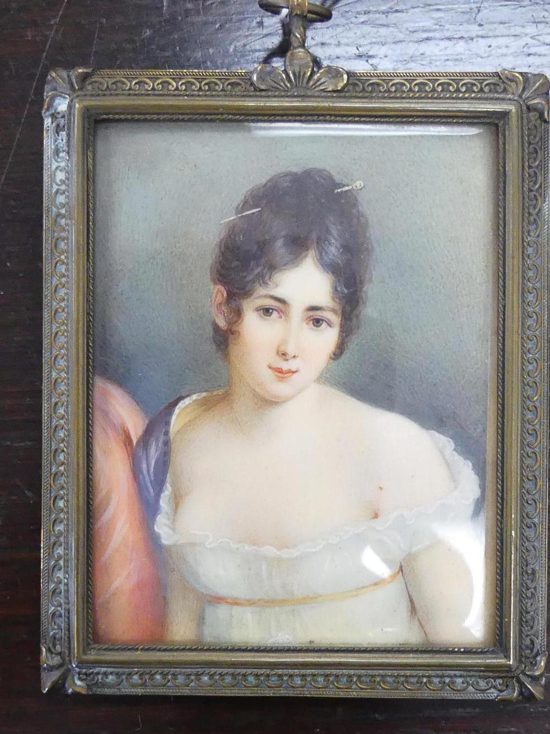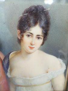 19th century portrait miniature of a young woman, 3 1/2" x 2"