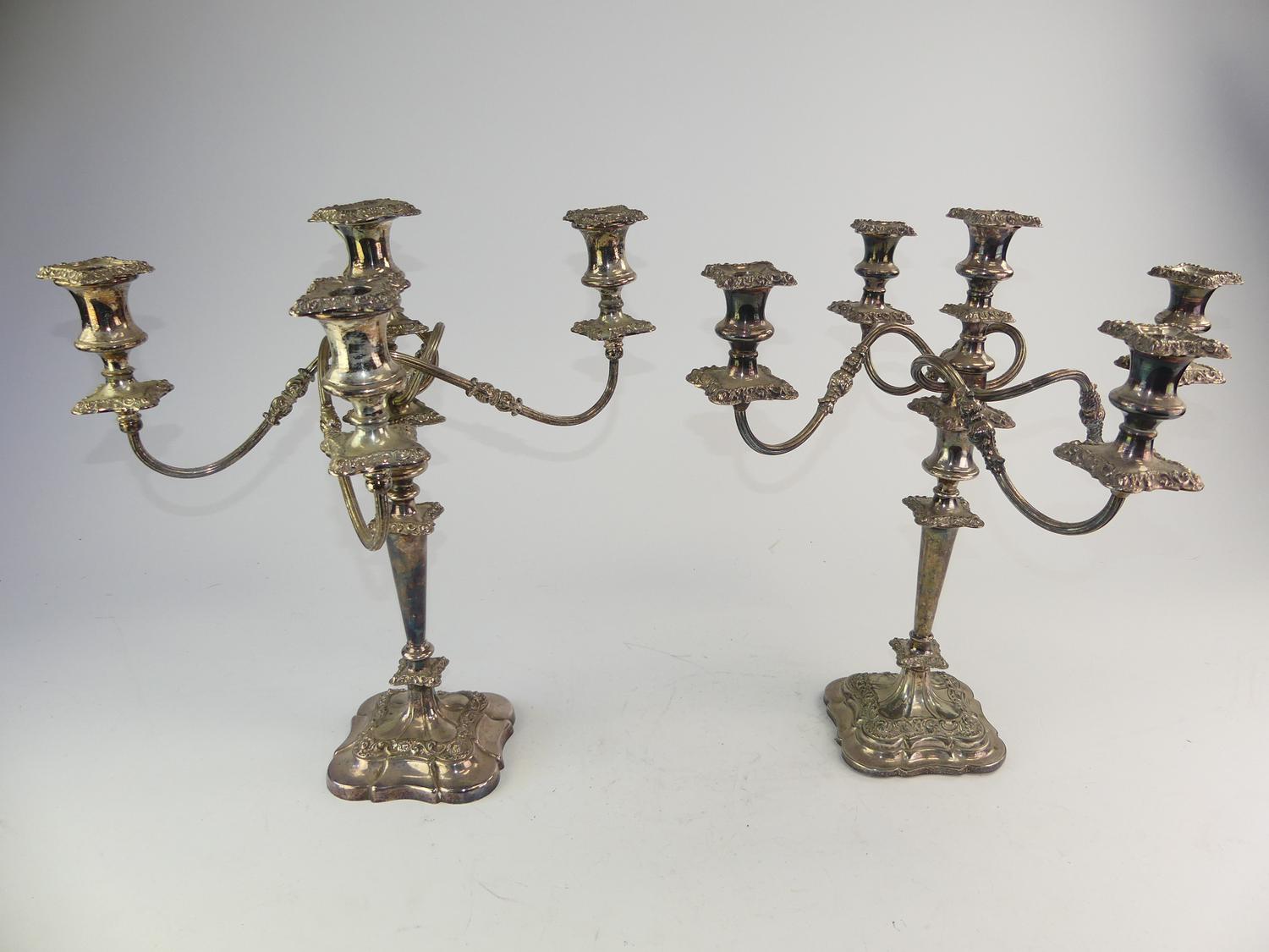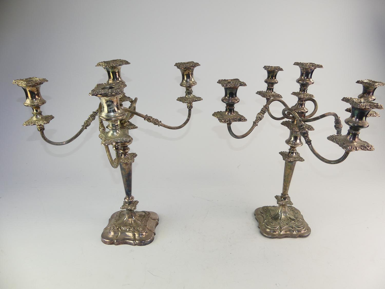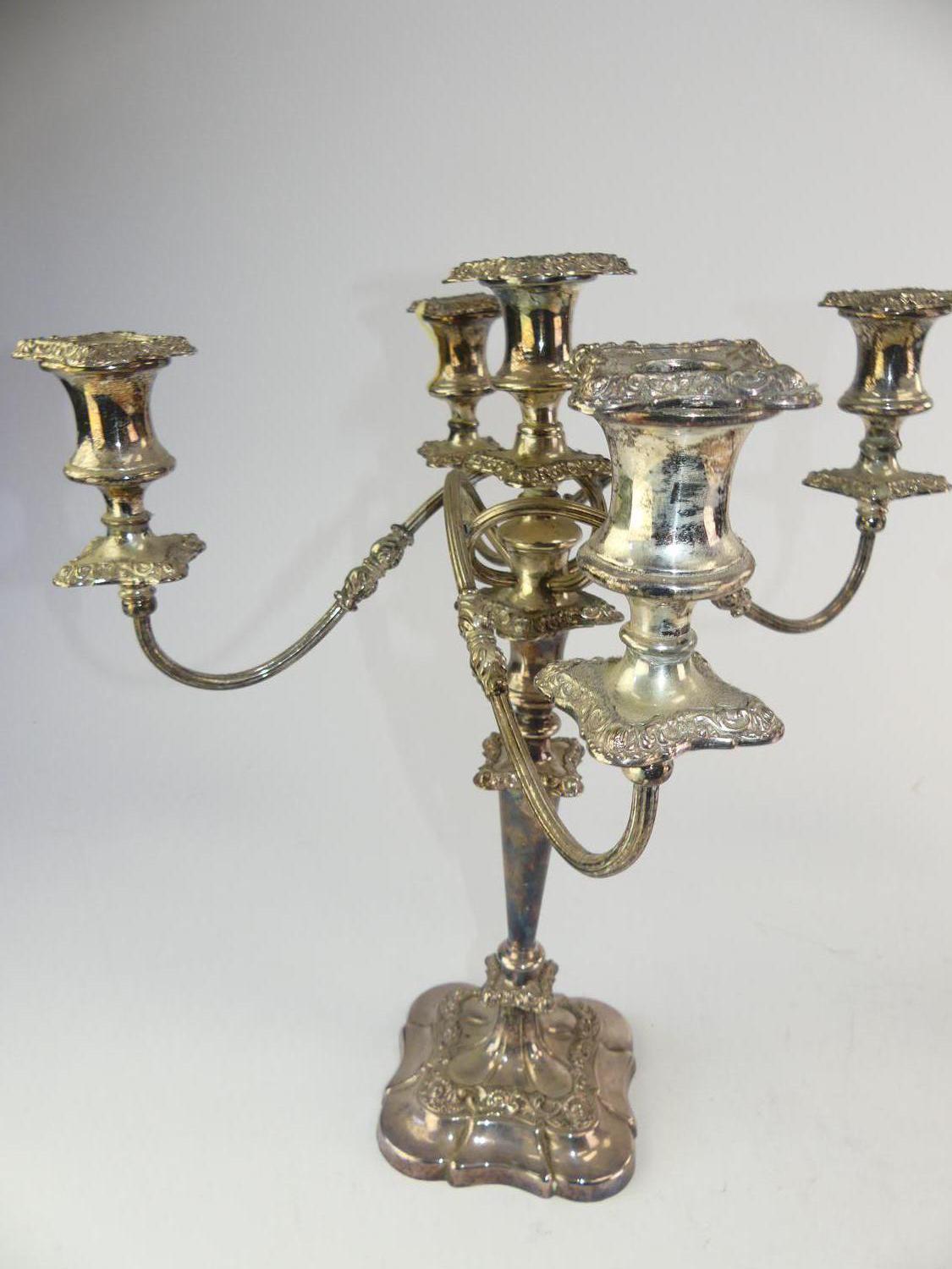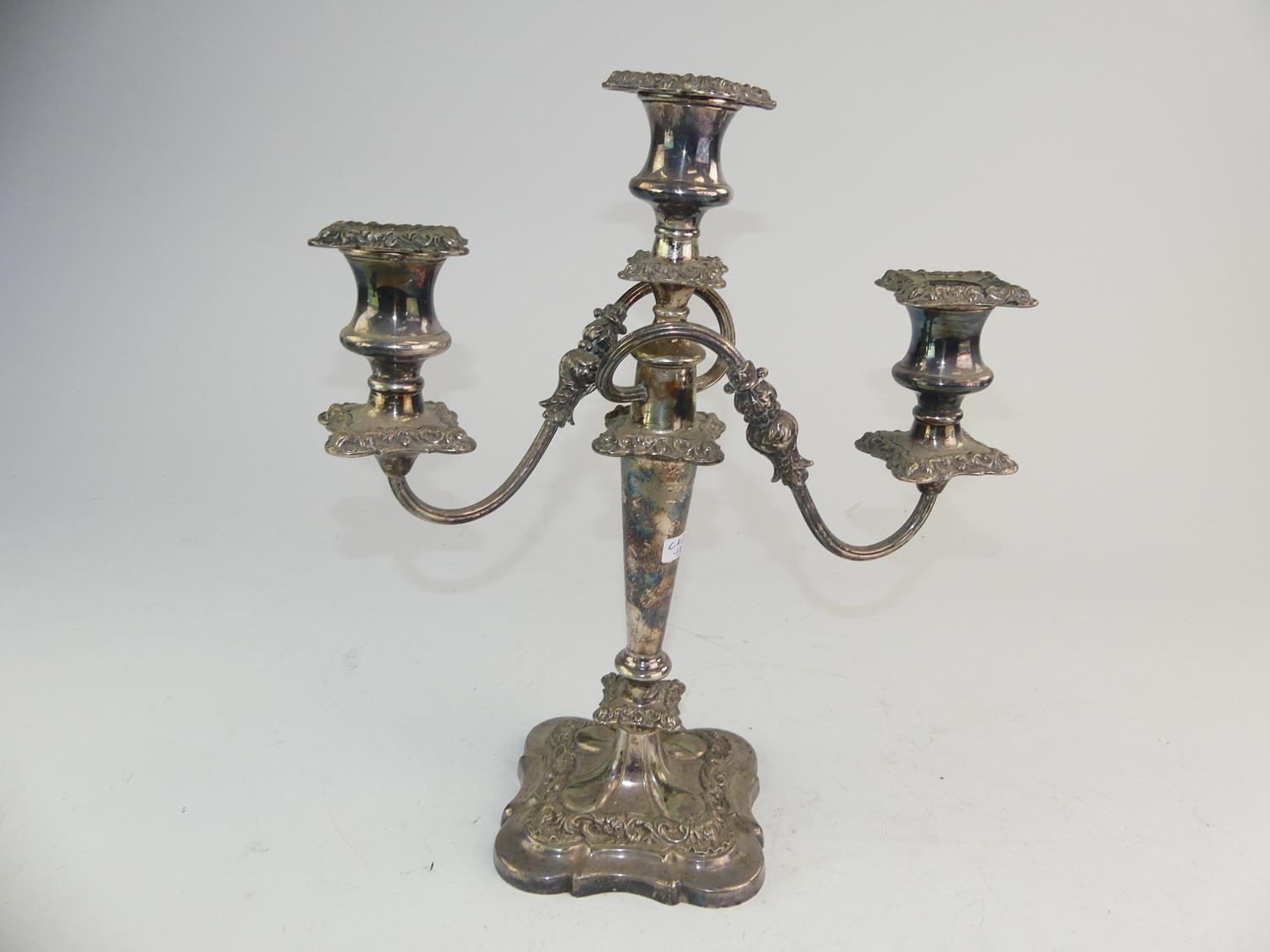 set of three silver plate candelabra, ht. 19" and smaller