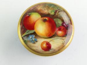 royal worcester fruit pattern porcelain box, signed w. bee, 1 1/4" x 1 3/4"