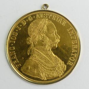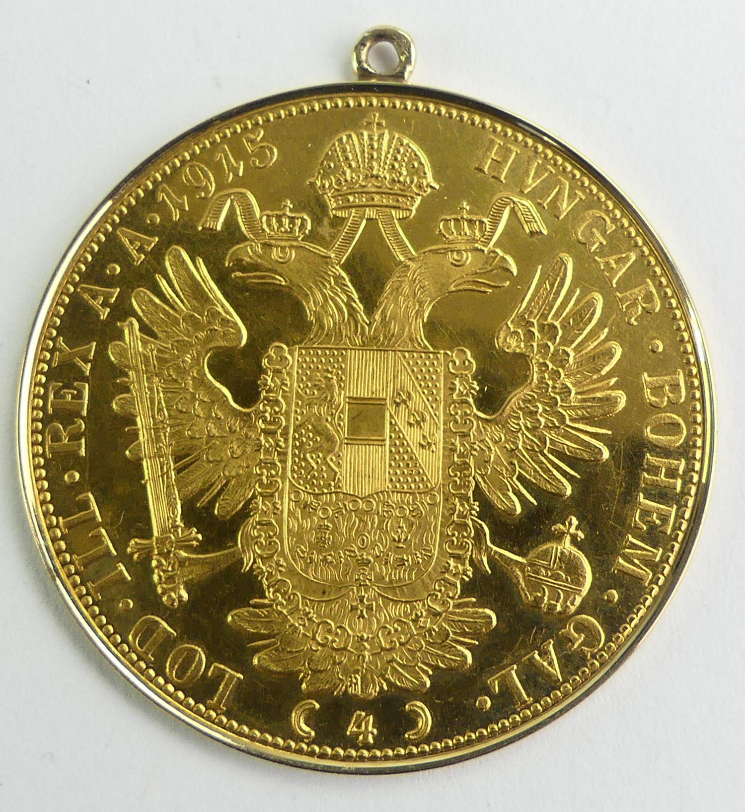 1915 austrian 4 ducat coin pendant, 40mm dia., 14.9 grams