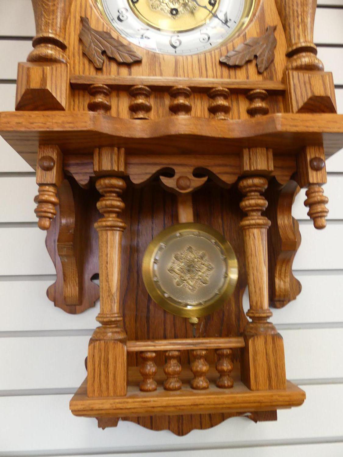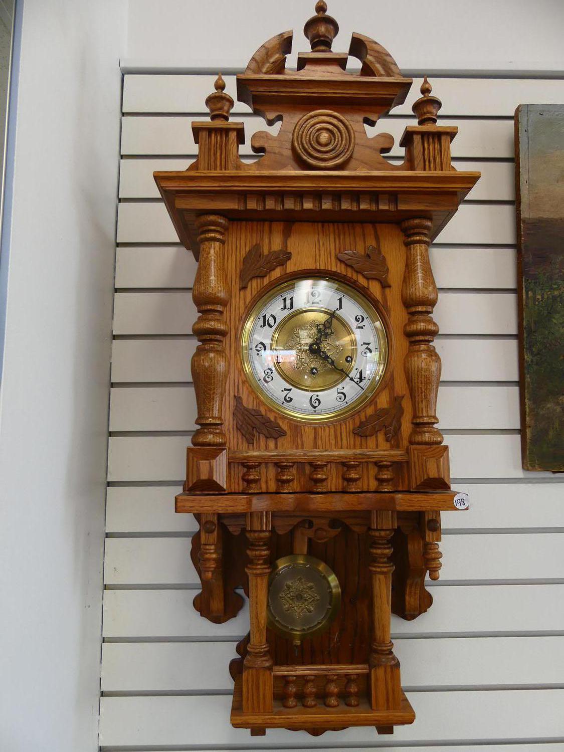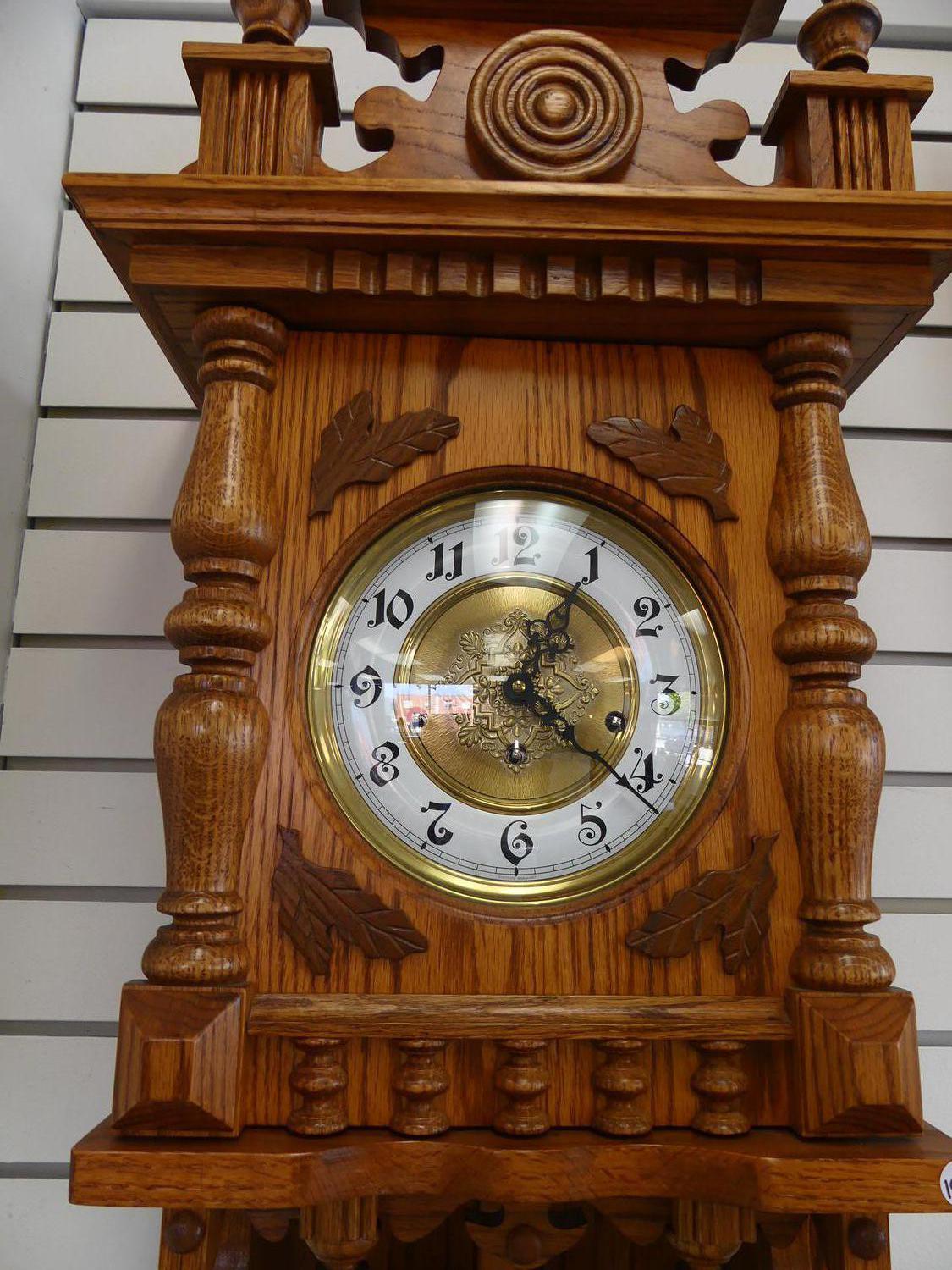 oak wall clock, alta vista clocks by walter casey dated 1984