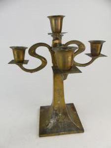 art nouveau signed benedict karnak egyptian revival brass candelabrum, ht 13 1/2"